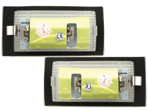 These items are perfectly matching to each vehicle and are plug-and-play. It is not in the illumination of a LED Festoon, but an elaborate crafted LED board with the maximum number of LEDs. This solution enables a uniform and bright illumination of the plate, which will light up after the installation in a pure LED white.