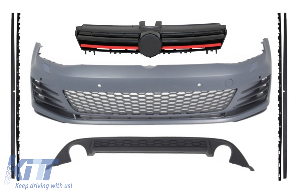 Complete GTI Design body kit, front bumper, rear bumper diffuser and side skirts made from high quality polypropylene and are prepared for painting operation.