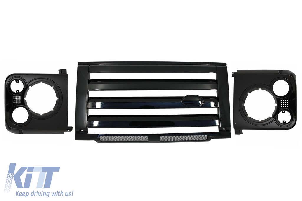 Central Grile & Headlights Covers assembly is meant to improve the design of your Land Rover Defender.
