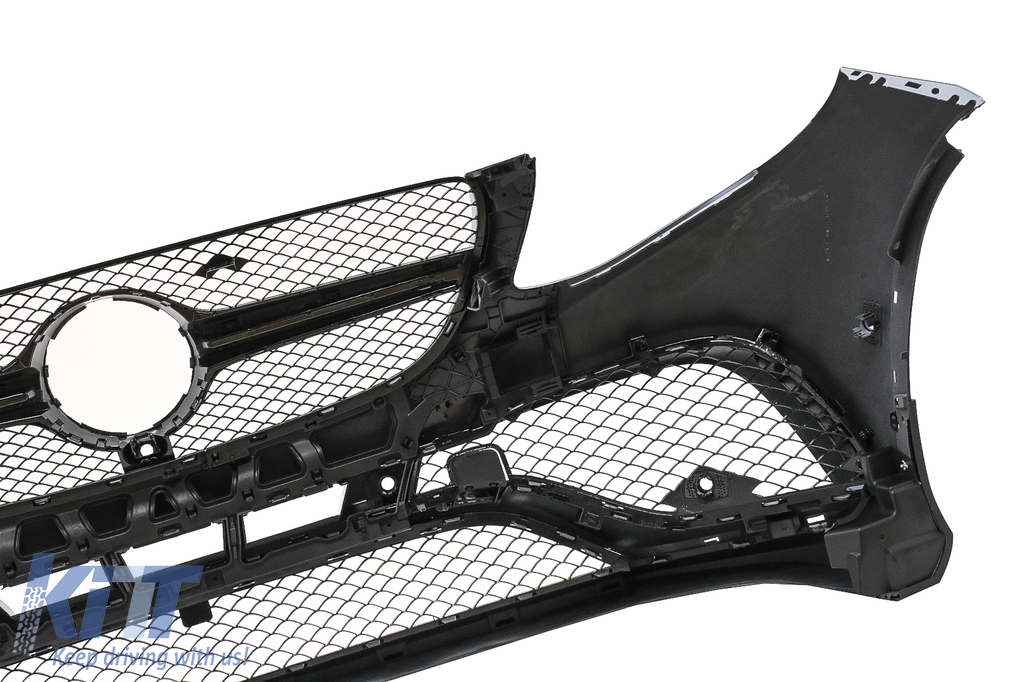 Front Bumper equipped with dedicated central grille, central-lower grille, side grilles, side fins, parking sensors (PDC) supports, supports for camera system, bumper moldings and bumper fins.