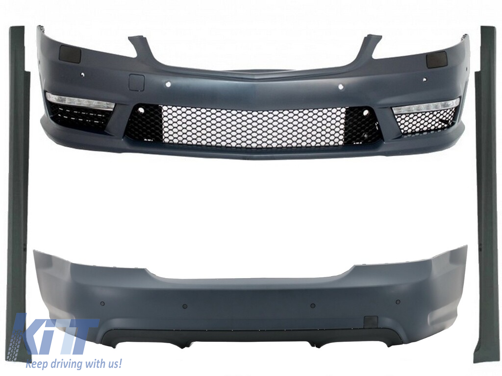 Equipped with central-lower grille, holes for parking sensors (PDC) and side grilles equipped with DRL LED Lights