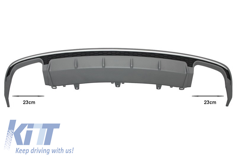 Rear Bumper Air Diffuser crafted in high quality ABS plastic equipped with double outlet for twin exhaust muffler tips.