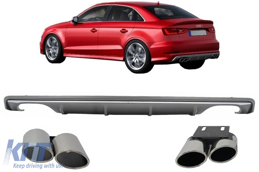 This assembly is meant to complete the S3 look of your A3 8V together with the double exhaust rear bumper diffuser. You will get the quad S3 look on your standard A3 8V.