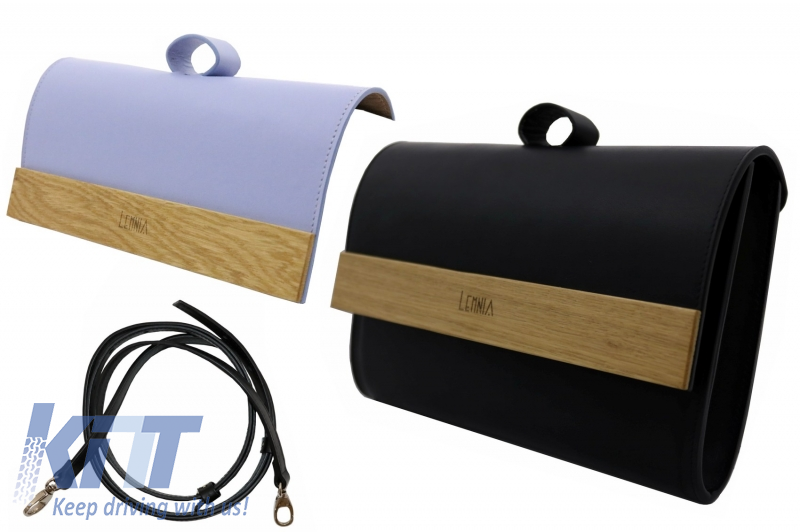 Lemnia Purse made of natural leather and oak, handmade. The purse has a single compartment.
