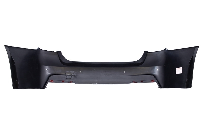 Rear bumper with rear bumper diffuser with single left outlet for double exhaust.