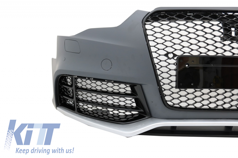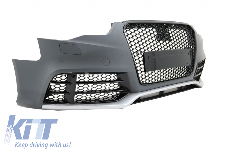 Equipped with honey comb RS5 design central grille, side grilles and lower bumper extension