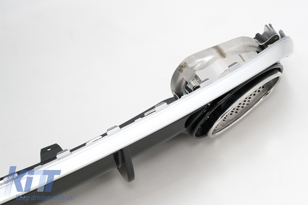 Rear Bumper Air Diffuser crafted in high quality ABS plastic, equipped with double exhaust outlets with 304 stainless steel muffler tips.