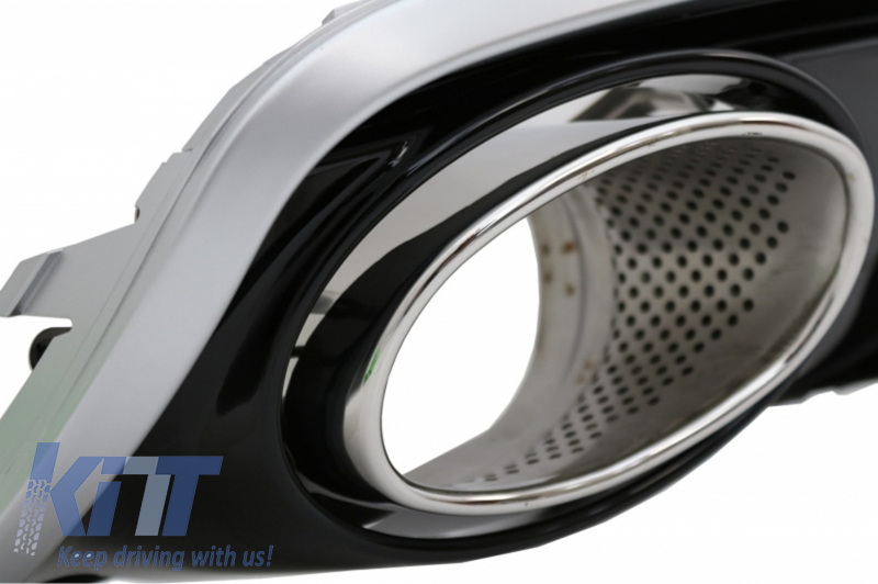 Rear Bumper Air Diffuser RS4 Design crafted in high quality ABS plastic, equipped with double exhaust outlets with 304 stainless steel muffler tips.