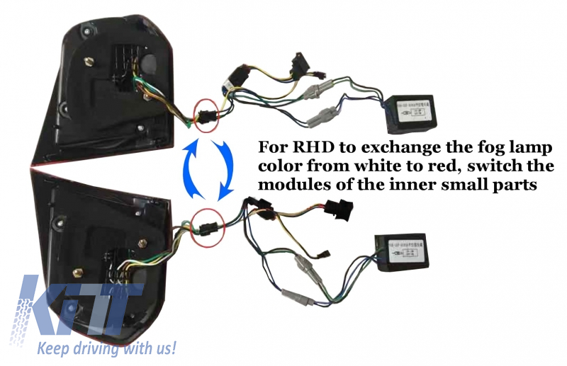 For RHD countries in order to exchange the fog lamp color from white to red, the modules of the inner small parts must be exchanged between them.