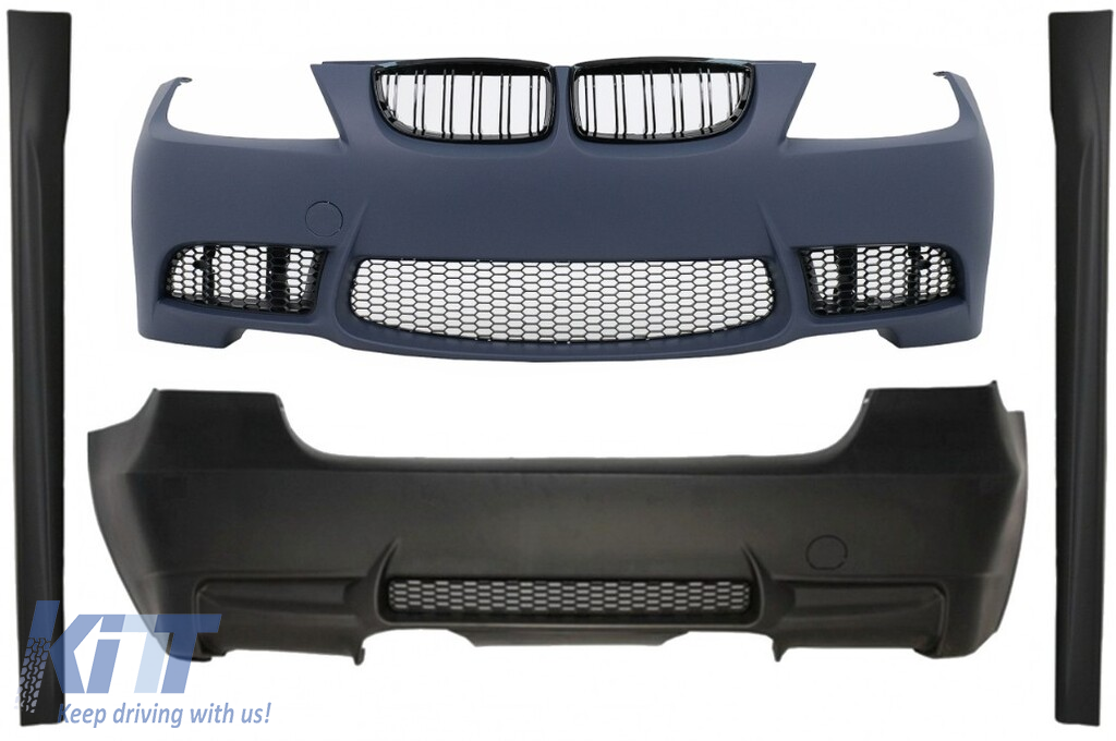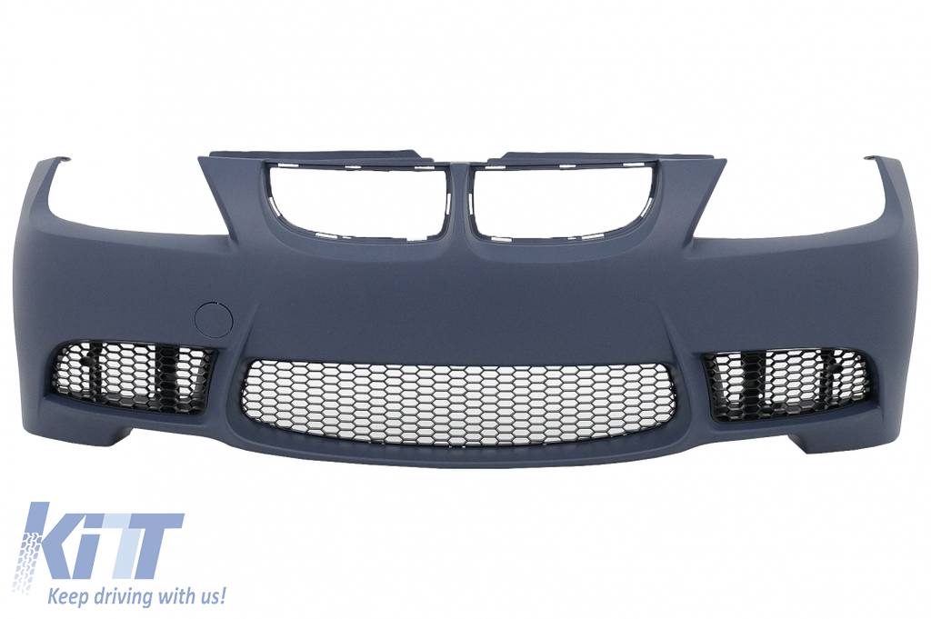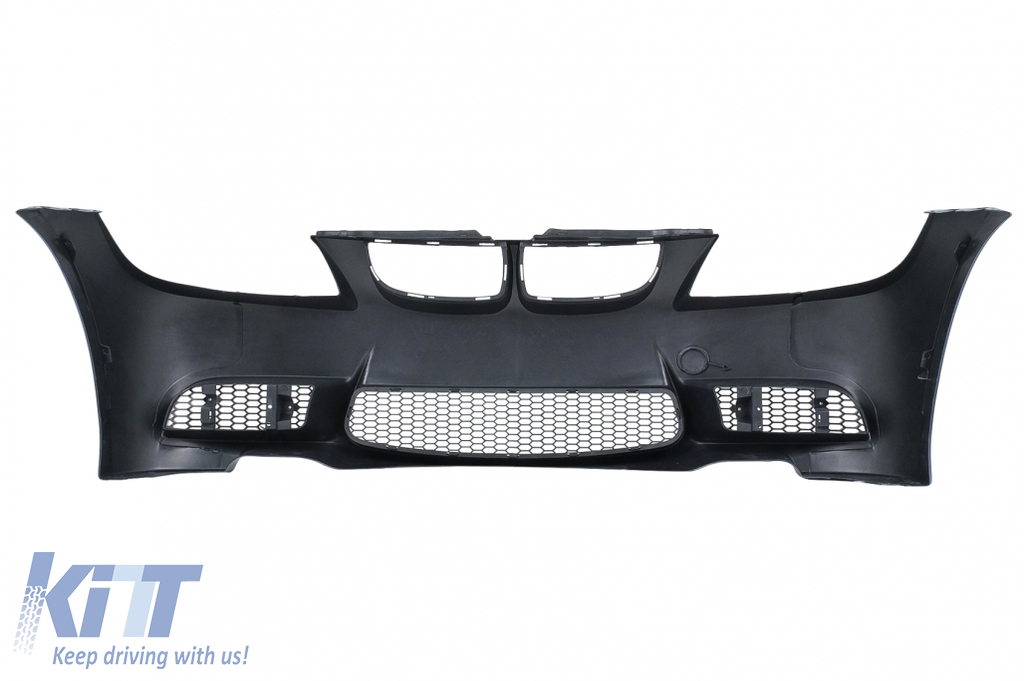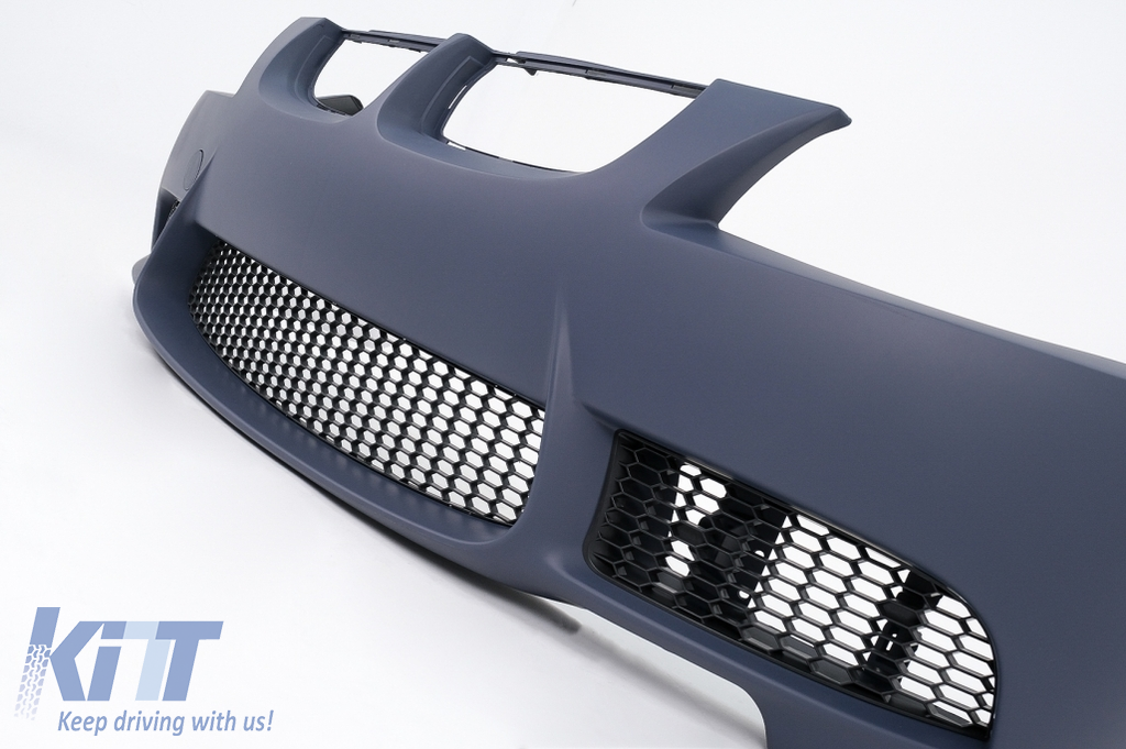 Front Bumper M3 Design Front bumper is crafted in high quality PP (polypropylene). Without PDC (parking sensors), without SRA (headlights washer system)