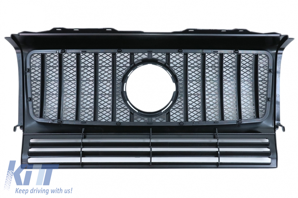 Front Bumper is equipped with front bumper steel reinforcement, central grille, side grilles, aluminium ornaments, intercooler grilles, dummy Distronic/Radar Sensor and license plate support