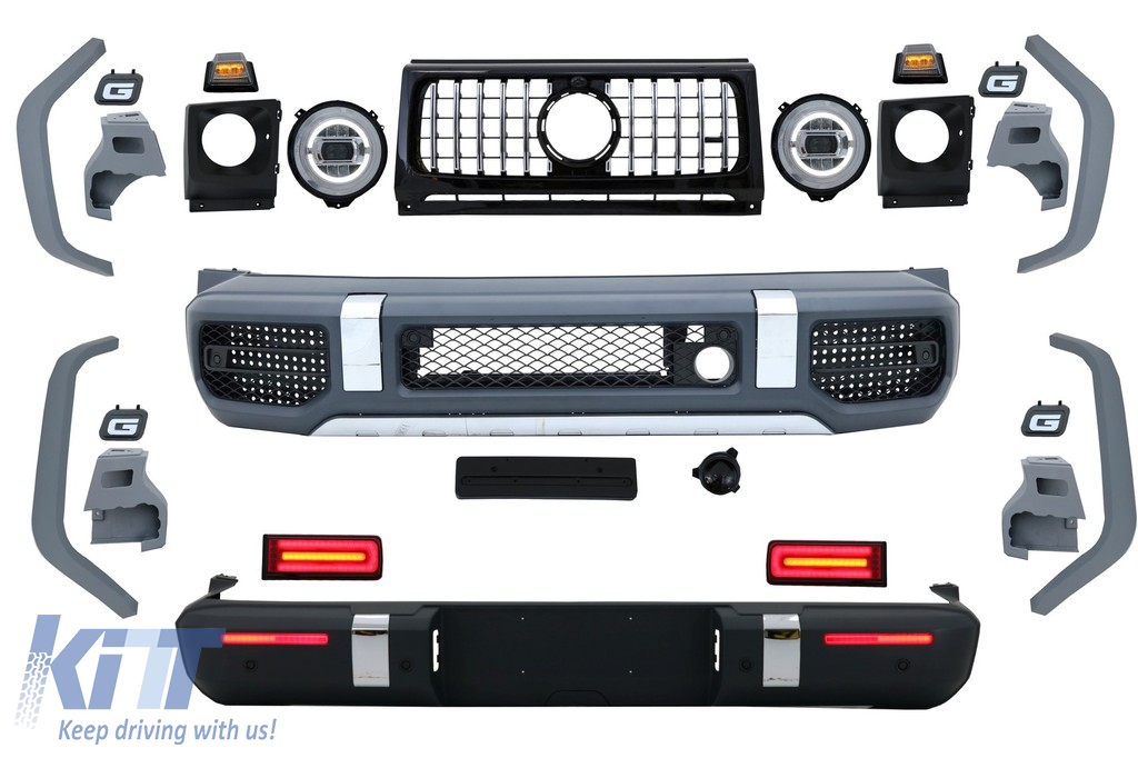 This 2018 look full conversion body kit is meant to upgrade the look on your G-class W463 1990-2017 and transform it into the newest model.