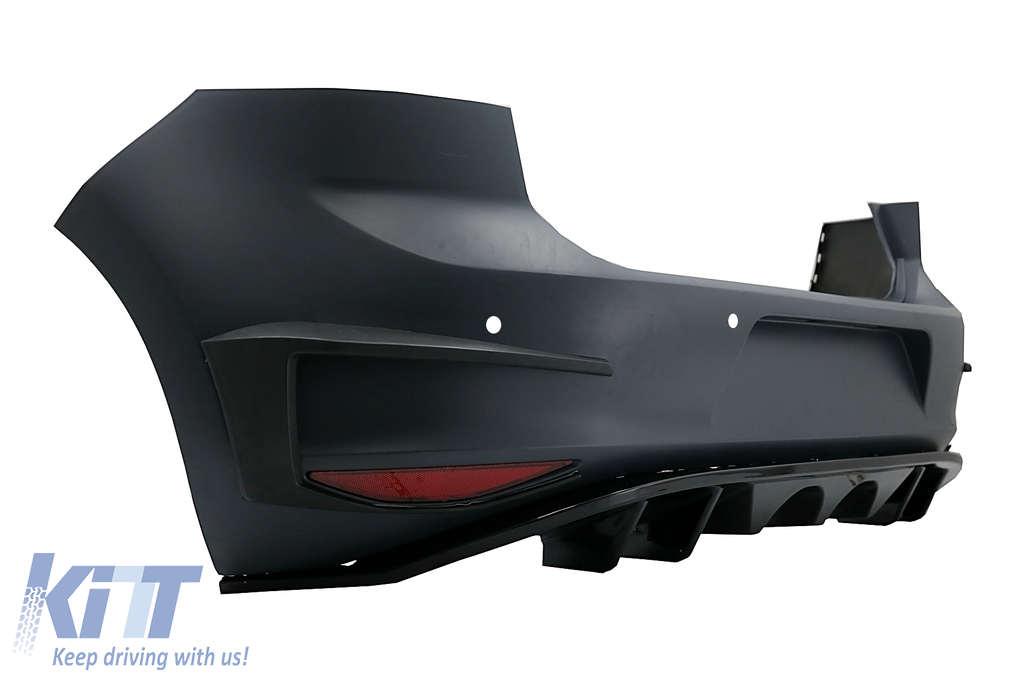 Rear Bumper with diffuser and central twin exhaust outlets, tow hook cover and red side reflectors.