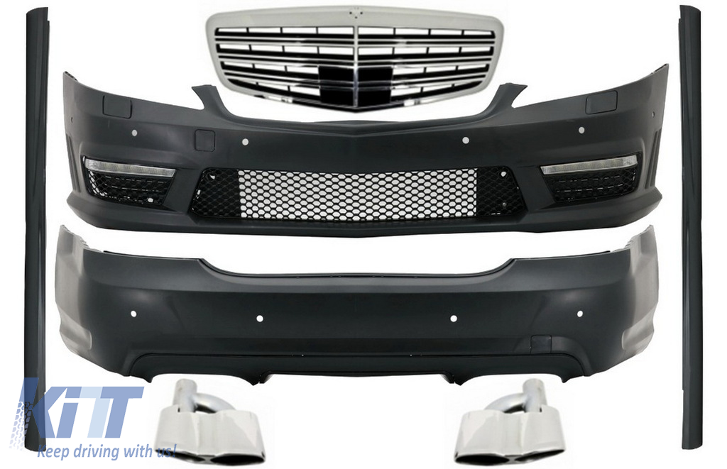 This complete body kit is meant to improve the look of your Mercedes and convert it to a Mercedes W221, sporty looking model.