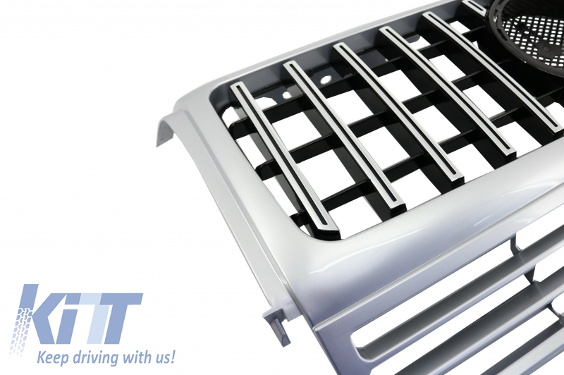 Front Bumper is equipped with front bumper steel reinforcement, central grille, side grilles, aluminium ornaments, intercooler grilles, dummy Distronic/Radar Sensor and license plate support.