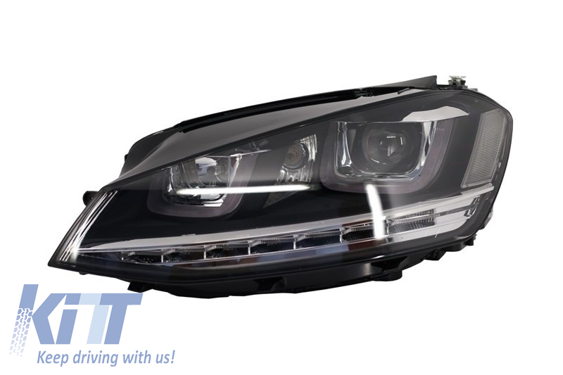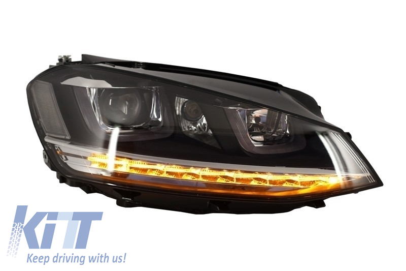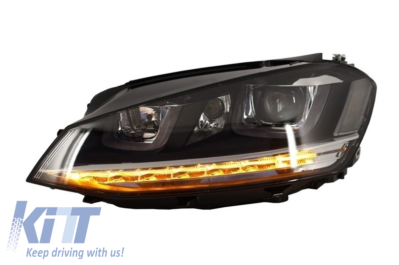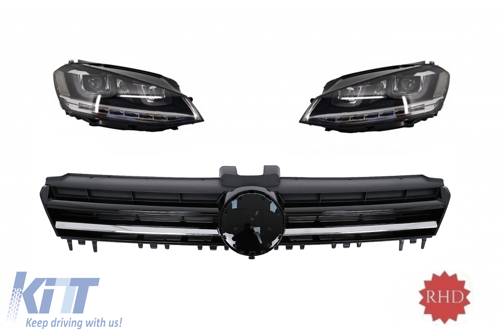 RHD Headlights LED FLOWING Dynamic Sequential Turning Lights with Central Grille suitable for VW Golf 7 VII (2012-2017) R-Line Design Chrome Insertions