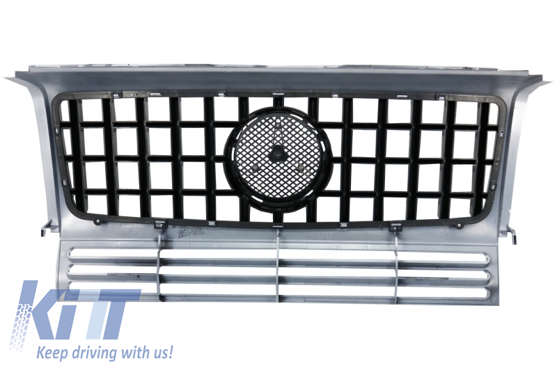 Front Bumper is equipped with front bumper steel reinforcement, central grille, side grilles, aluminium ornaments, intercooler grilles, dummy Distronic/Radar Sensor and license plate support.