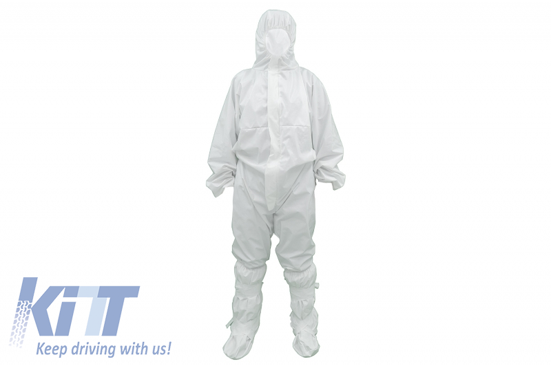 Cotton and Polyethylene white suit with hood, disposable, zipper closure, elastic cuffs, size XL (in environments where non-aggressive particles, dust, splashes, dirt are present).