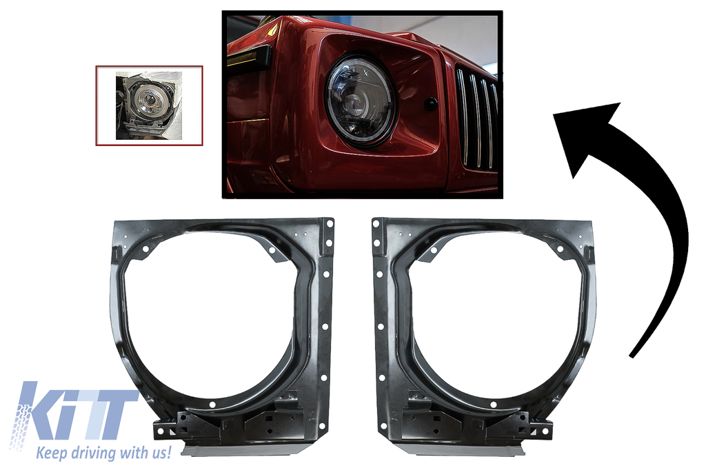 These headlight metal supports will help you achieve the facelift look for you G-Class.