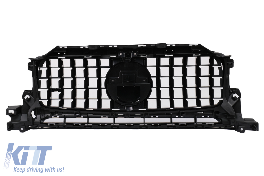 Front Bumper is equipped with front bumper steel reinforcement, central grille, side grilles, ornaments, intercooler grilles, and PDC Support