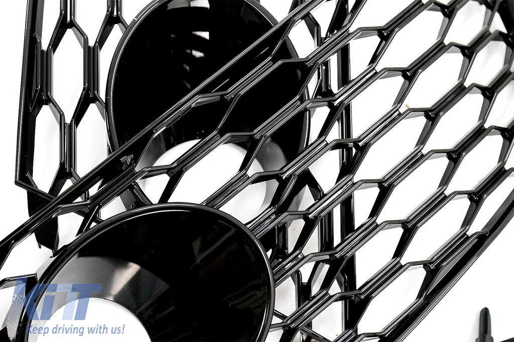 Side grilles (piano black) equipped with ACC (Distronic) holes and with brushed aluminium ornaments