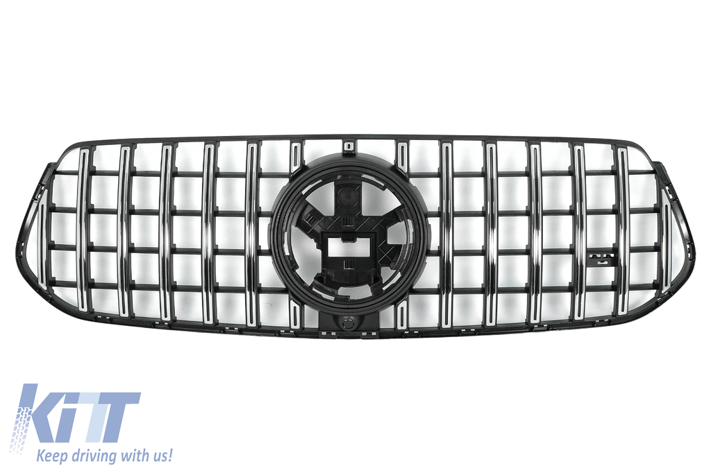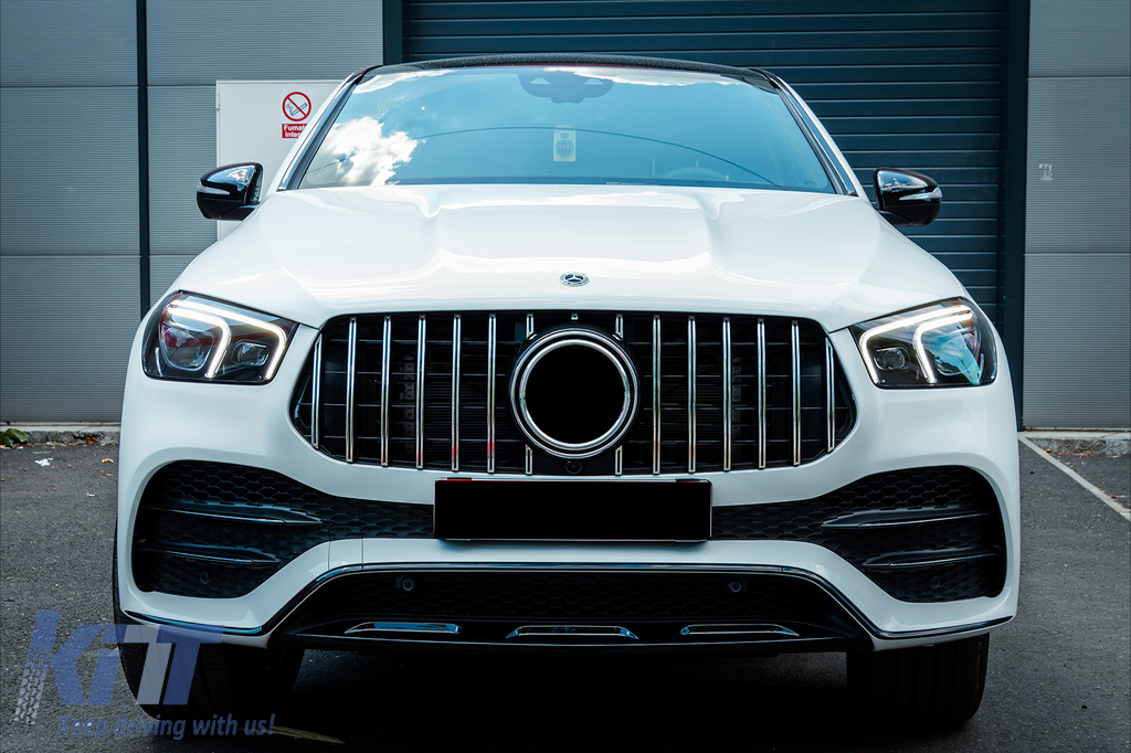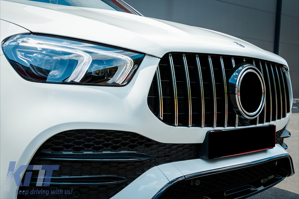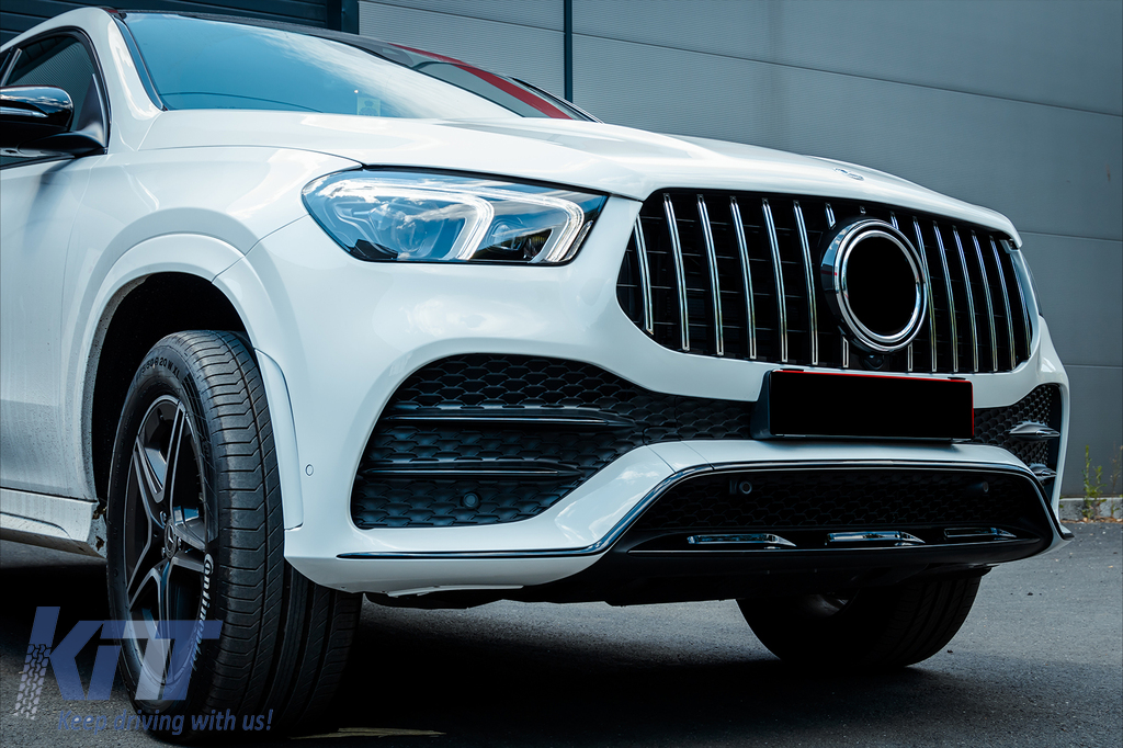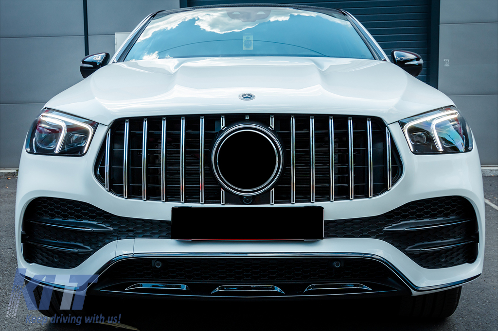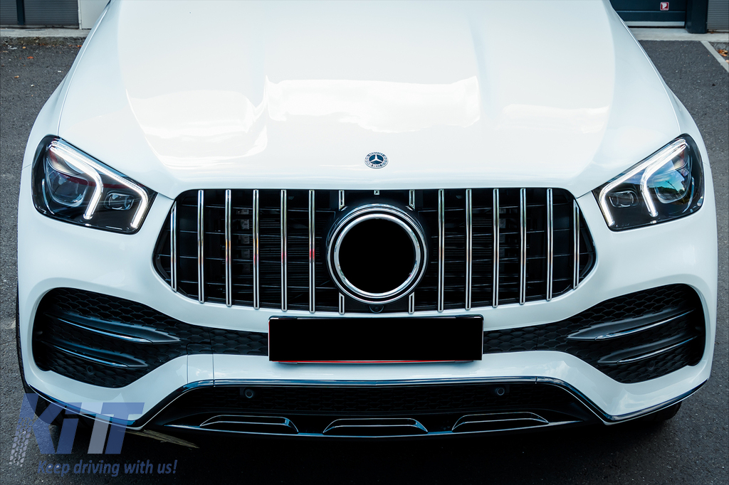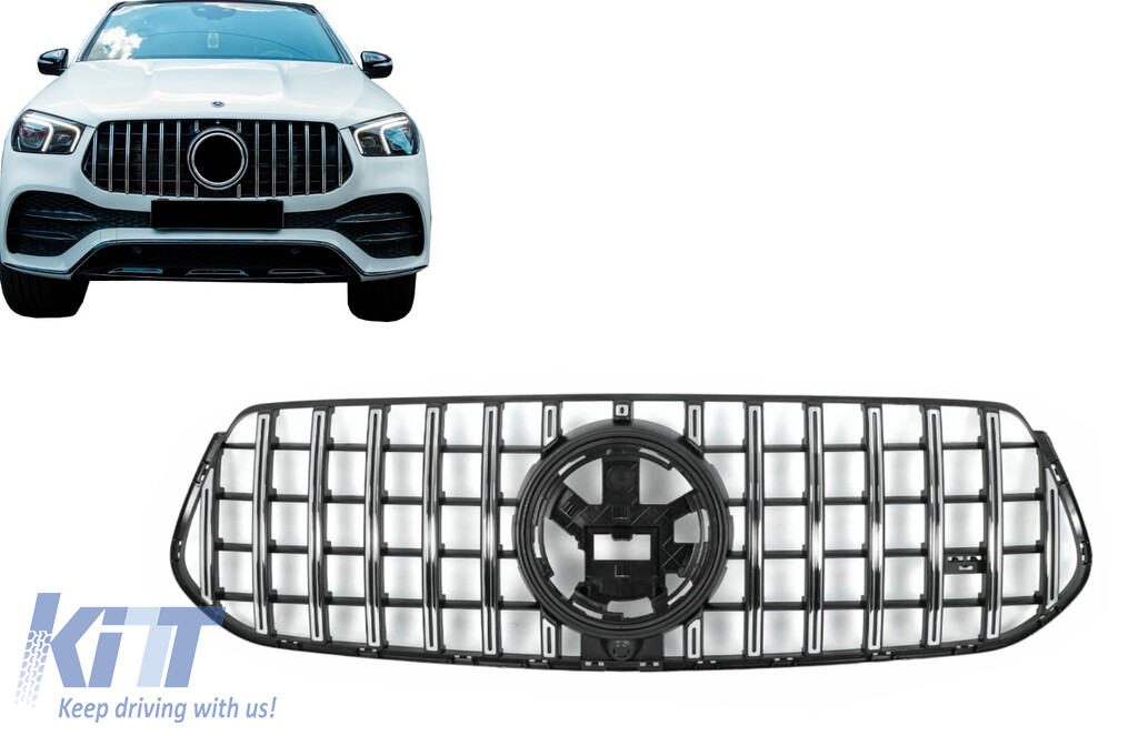 Front Central Grille suitable for Mercedes GLE SUV W167 V167 GLE Coupe C167 Sport Package (2019-06.2023) GTR Panamericana Design Glossy Black and Chrome