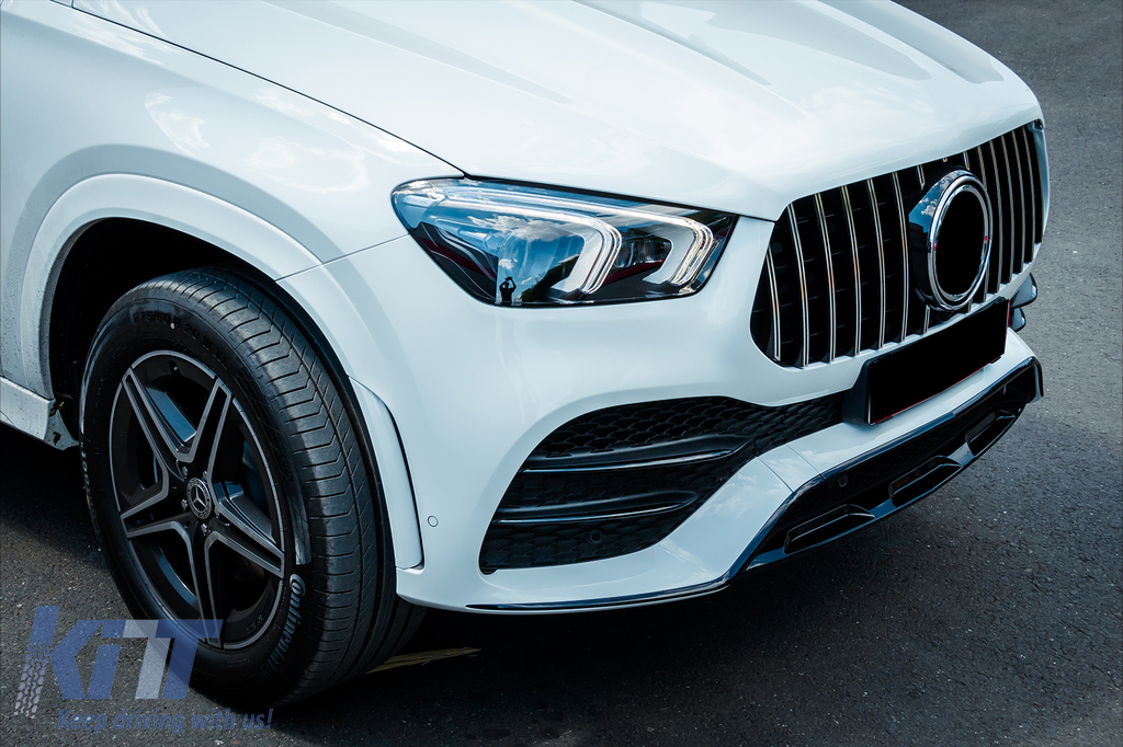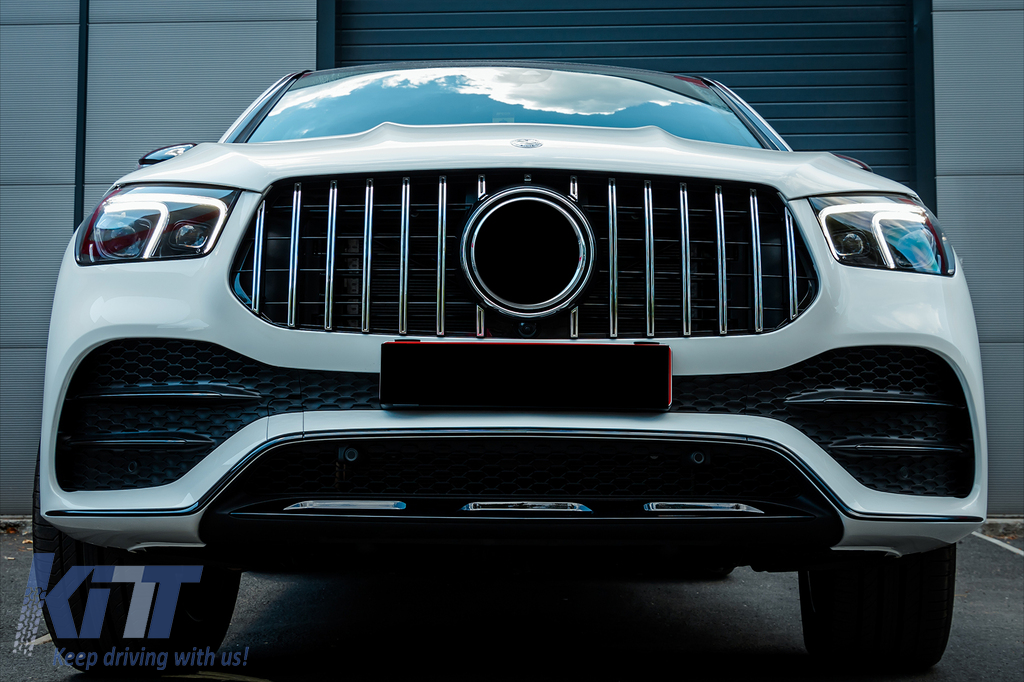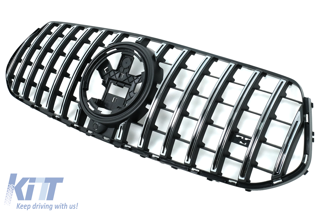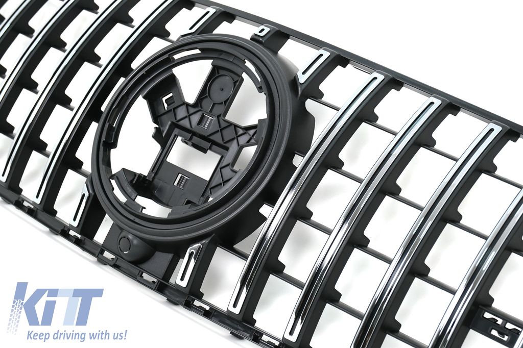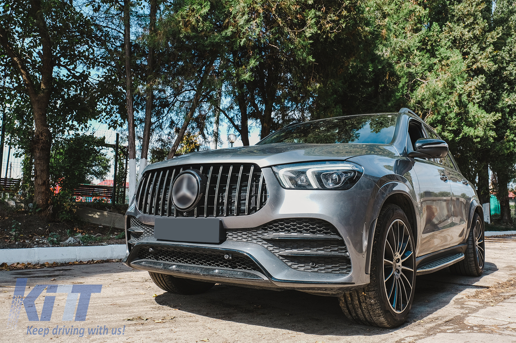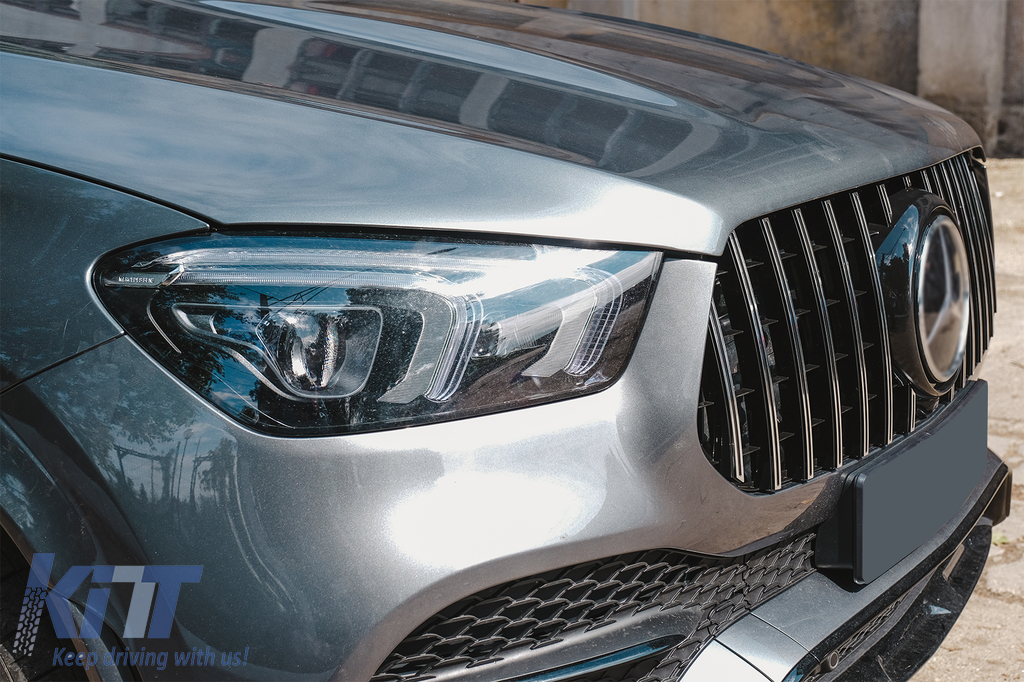 Front Central Grille suitable for Mercedes GLE SUV W167 V167 GLE Coupe C167 Sport Package (2019-06.2023) GTR Panamericana Design Glossy Black and Chrome