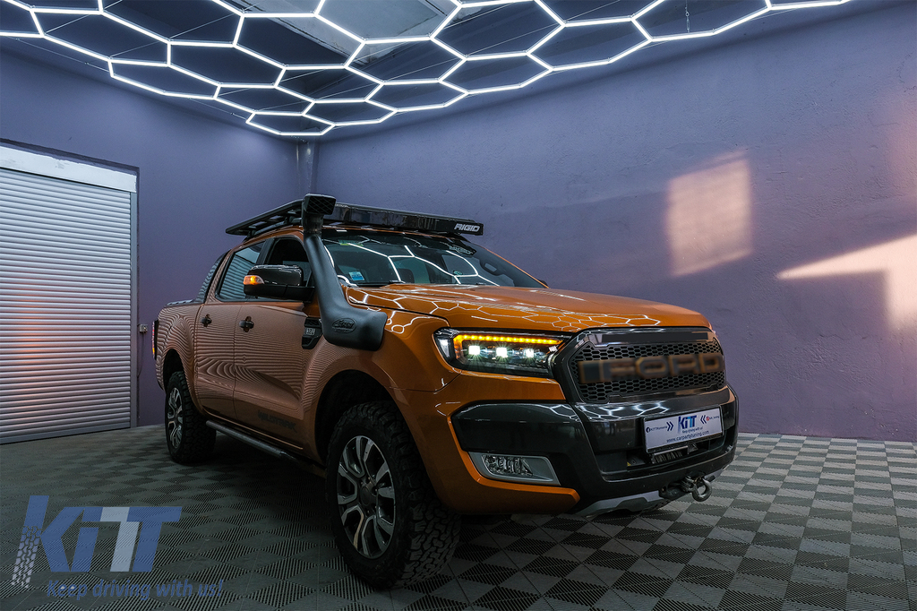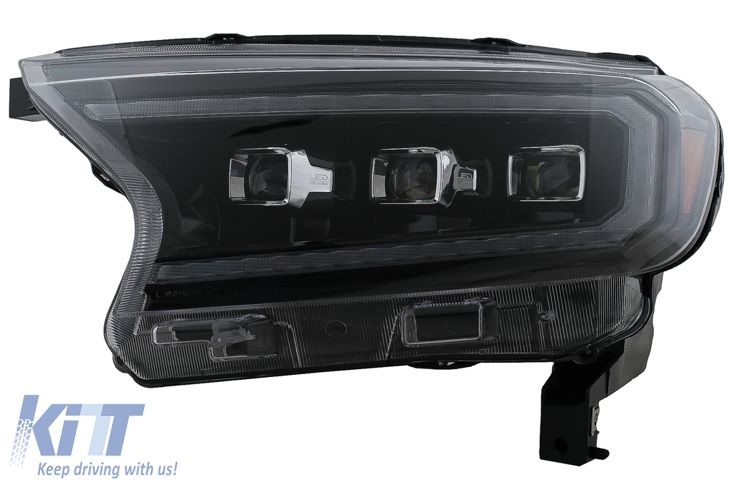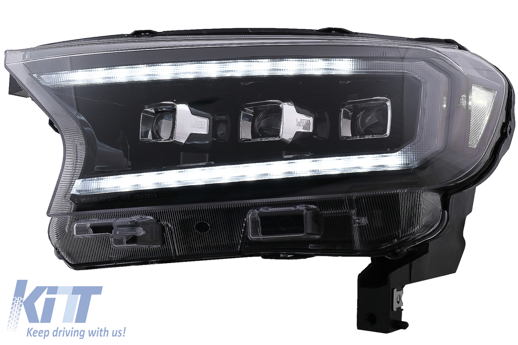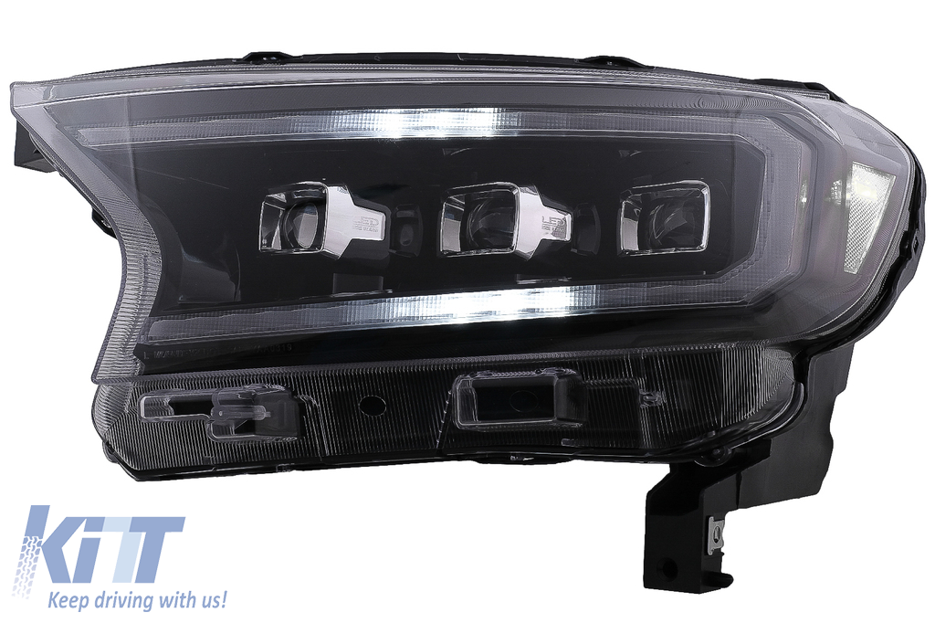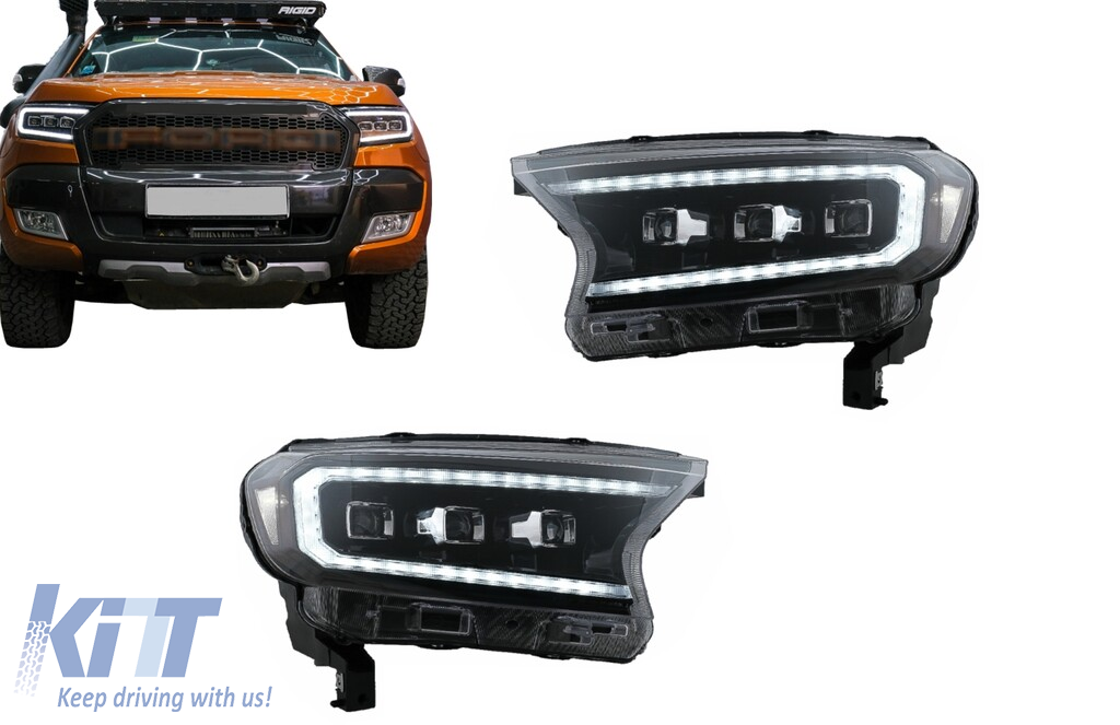 Headlights LED Light Bar Dynamic Start-up Display suitable for Ford Ranger Raptor (2015-2020) LHD Full Black Housing with Sequential Dynamic Turning Lights Matrix Projector