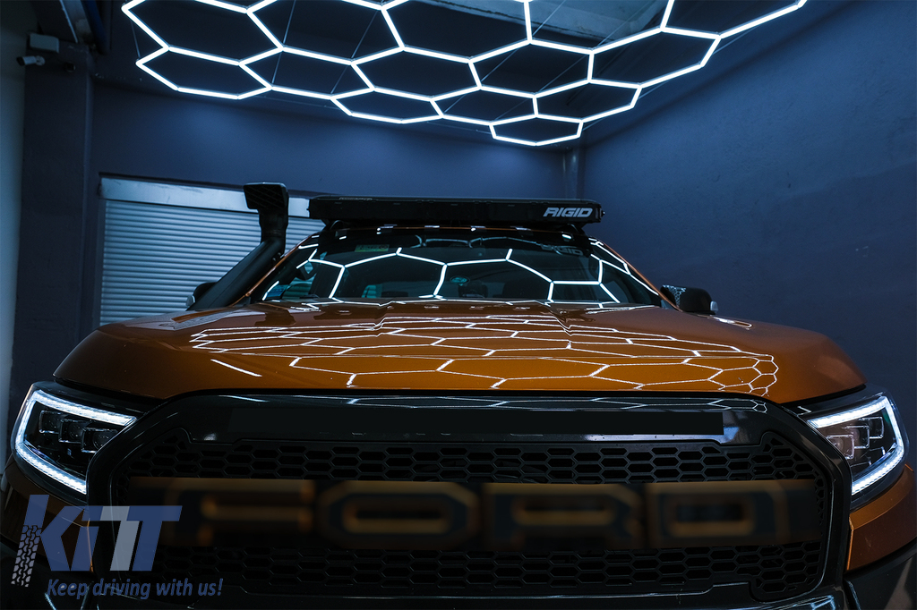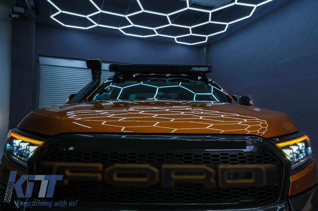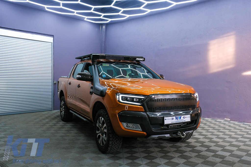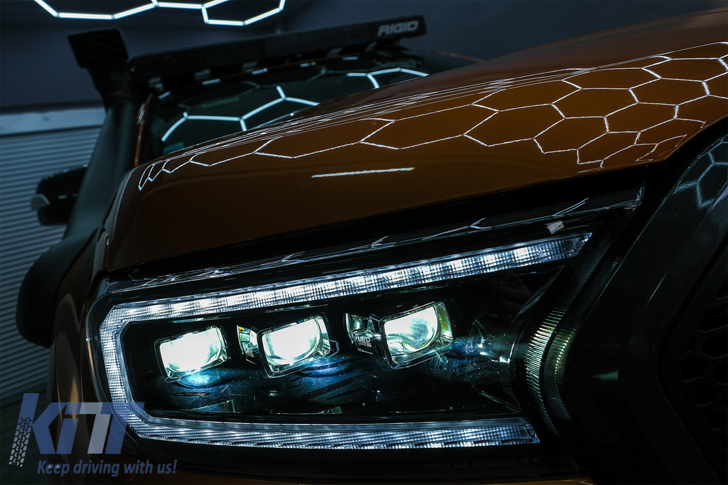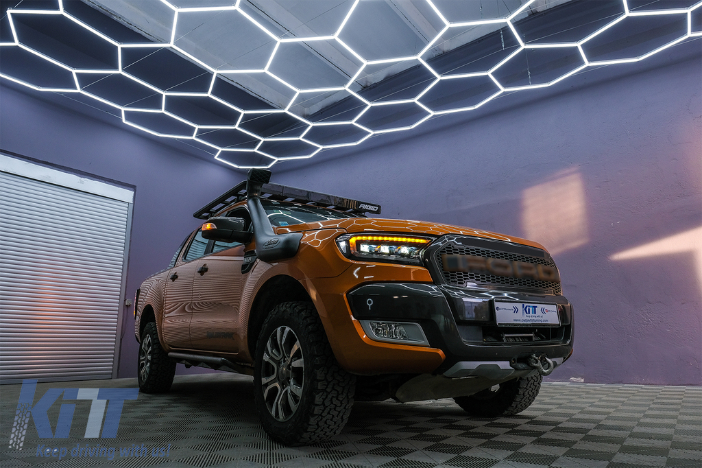 Headlights LED Light Bar Dynamic Start-up Display suitable for Ford Ranger Raptor (2015-2020) LHD Full Black Housing with Sequential Dynamic Turning Lights Matrix Projector