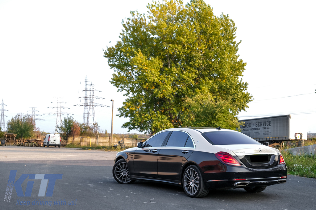 Rear bumper equipped with double outlet exhaust, PDC Holders and brushed aluminum rear molding spoiler.