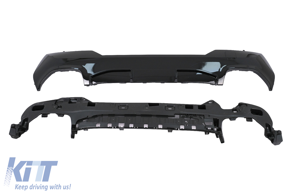 This rear bumper diffuser with exhaust tips improves your vehicle's exterior styling. An aggressive look to your Sport Package