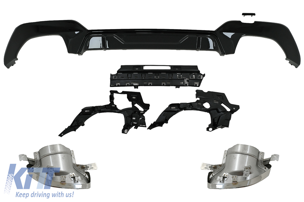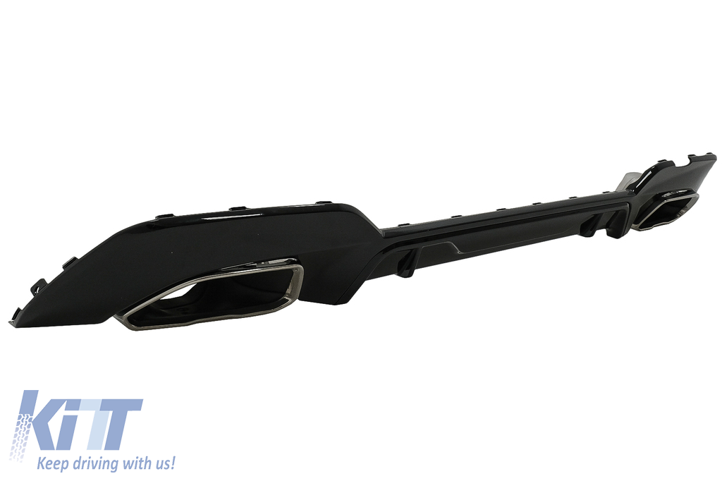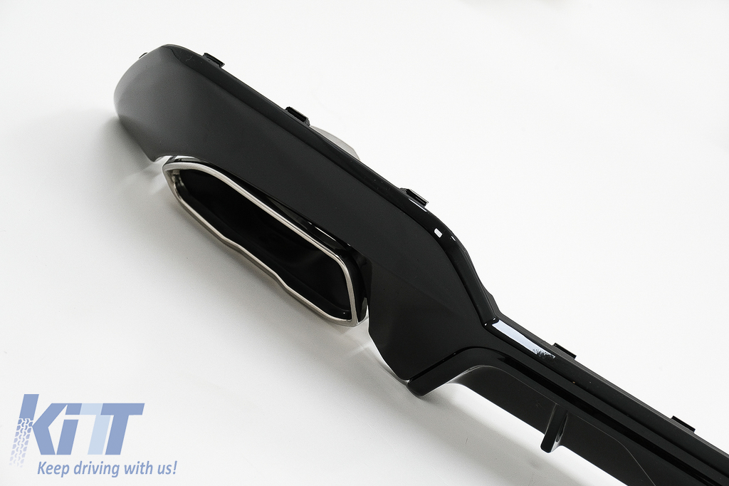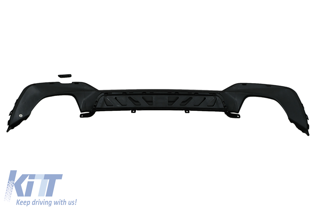 This rear bumper diffuser with exhaust tips improves your vehicle's exterior styling. An aggressive look to your Sport Package.