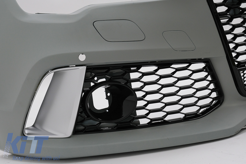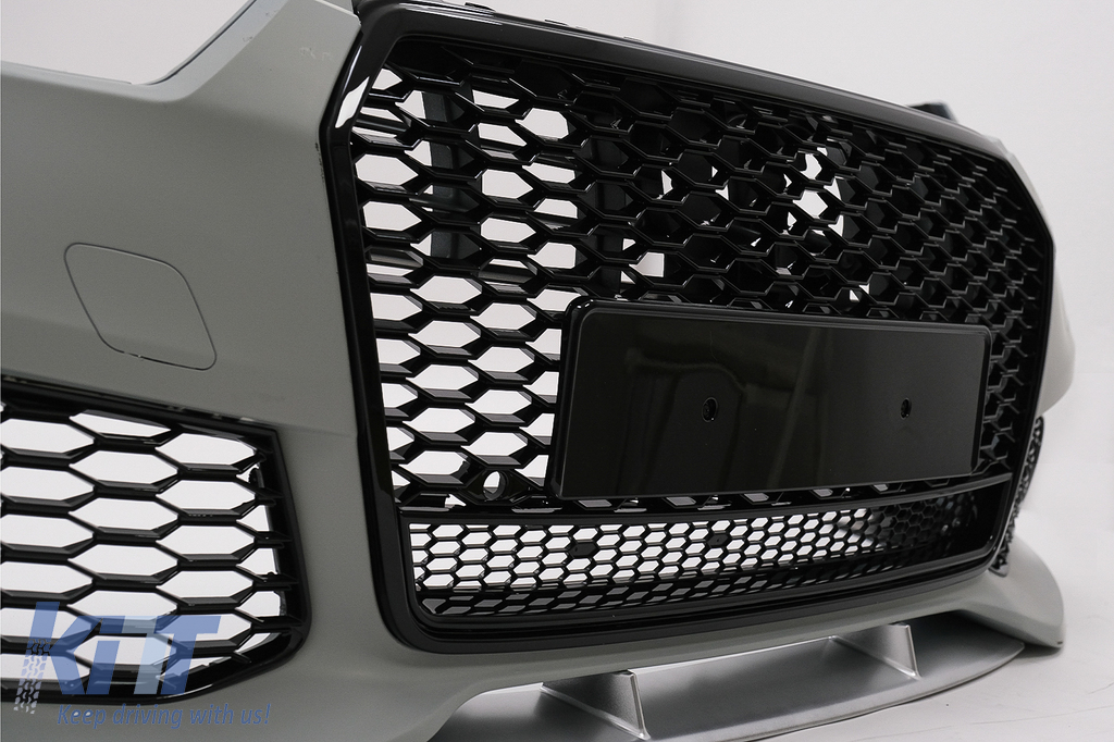 Equipped with honeycomb central grille and side grilles and lower bumper extension