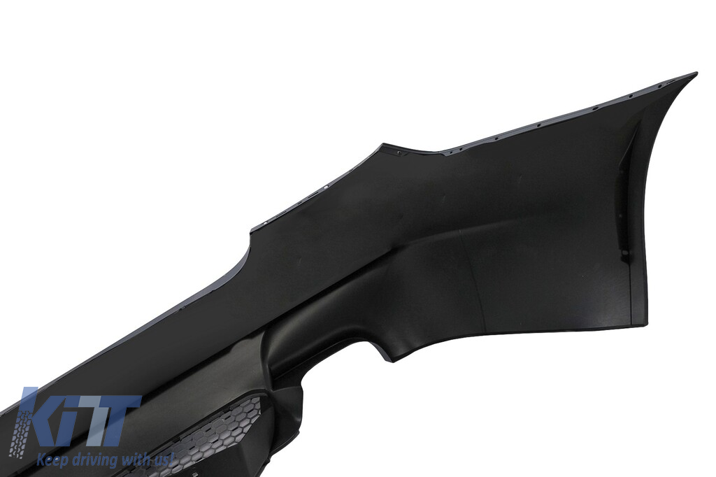 Rear bumper has outlets for two double exhausts and it is equipped with a detachable diffuser for left outlet for double exhaust