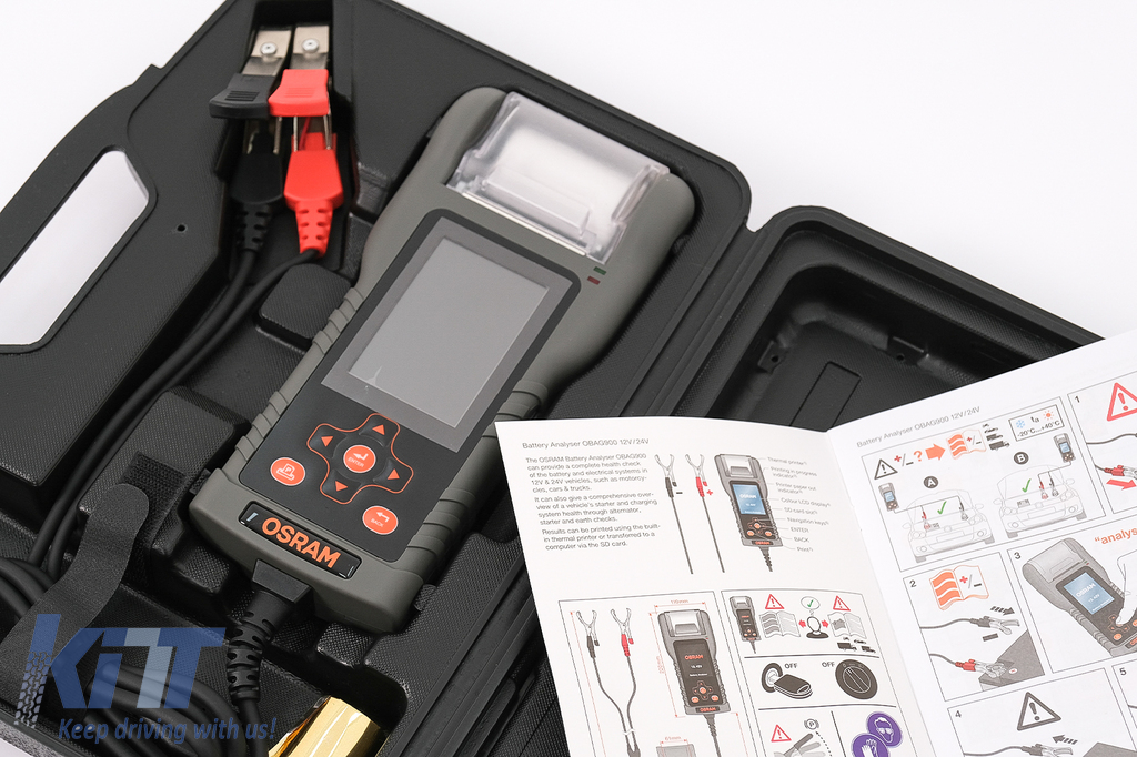 The OSRAM BATTERYtest PRO Battery Analyser can carry out a complete functional test of the of the battery and the electrical systems in 12V and 24V vehicles such as motorbikes, cars and trucks.