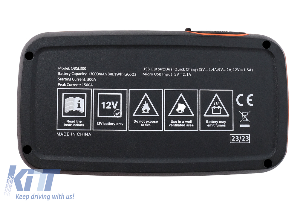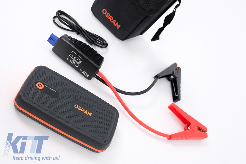 The OSRAM BATTERYstart300 compact Lithium Cobalt LiCoO2 jump starter for small to medium 12V vehicles up to 6L petrol engines and 3L diesel engines