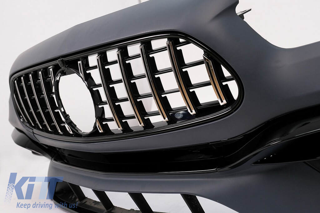 Front Bumper equipped with PDC holes, PDC holders, central grille with 360 camera support, central lower grille, side grilles, and moldings