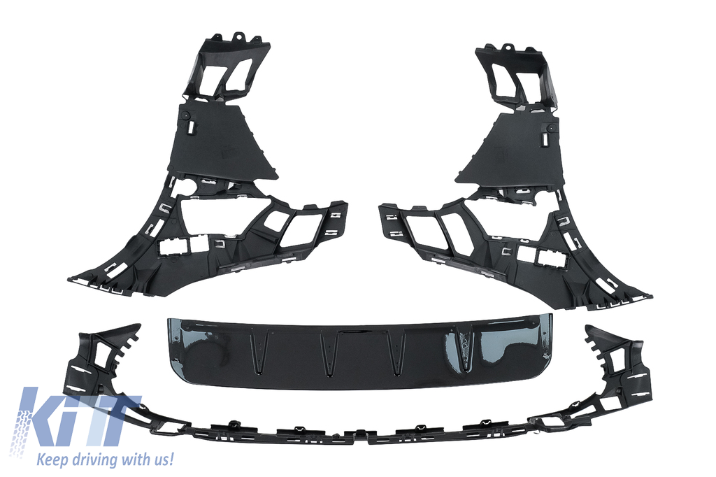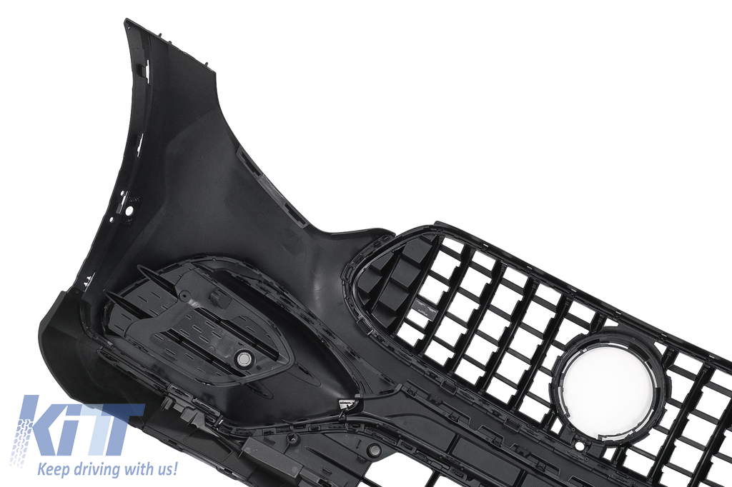The front bumper is equipped with central grille, central-lower grille, side grilles, side fins, parking sensors (PDC) supports and supports for camera system.