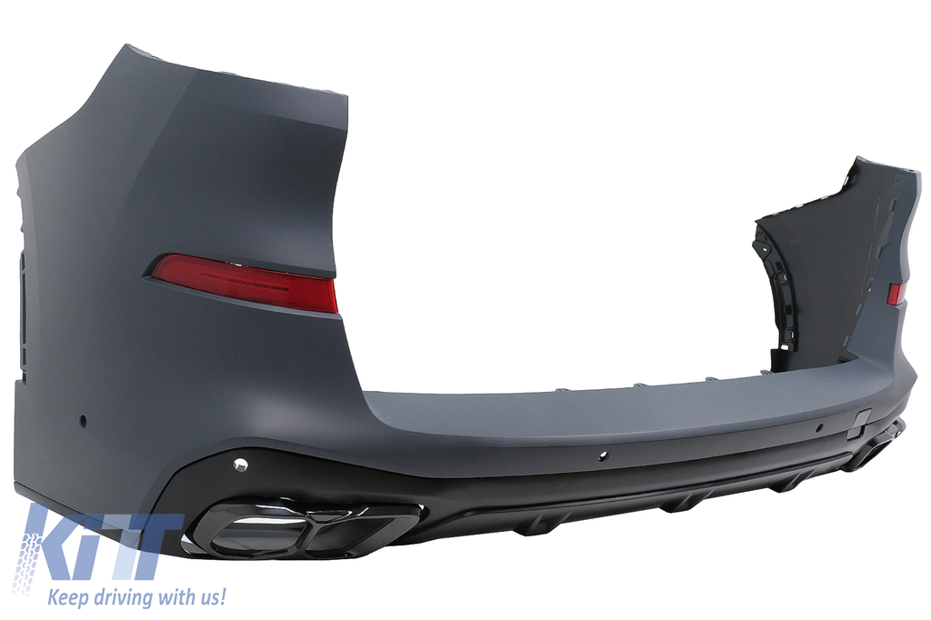 The rear bumper equipped with air diffuser with twin outlet, and supports for parking sensors (PDC).