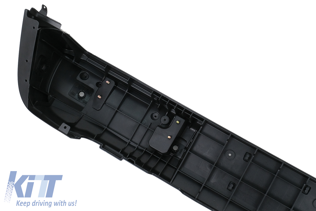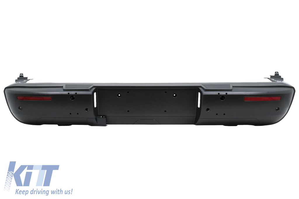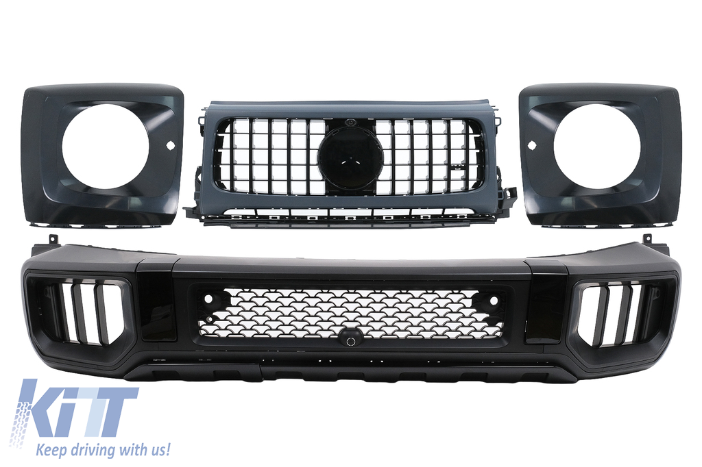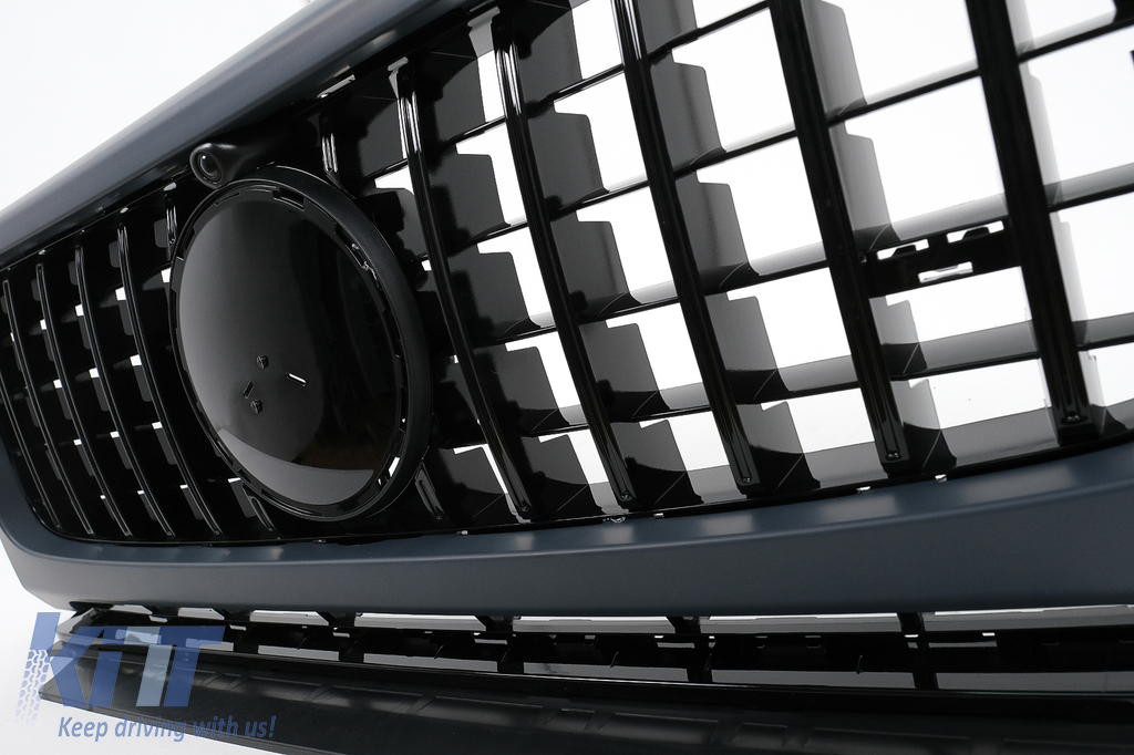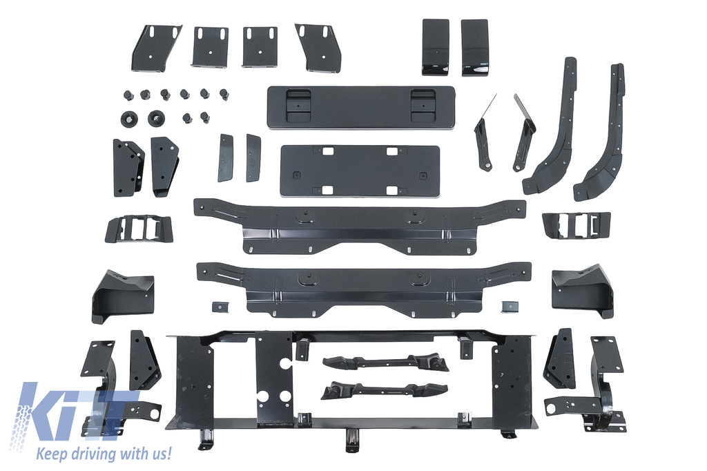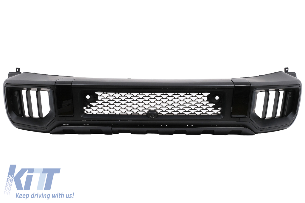 Front bumper is equipped with front bumper steel reinforcement, central grille, side grilles, ornaments, intercooler grilles, and PDC Support