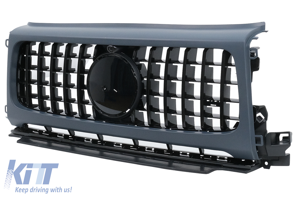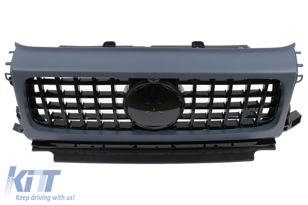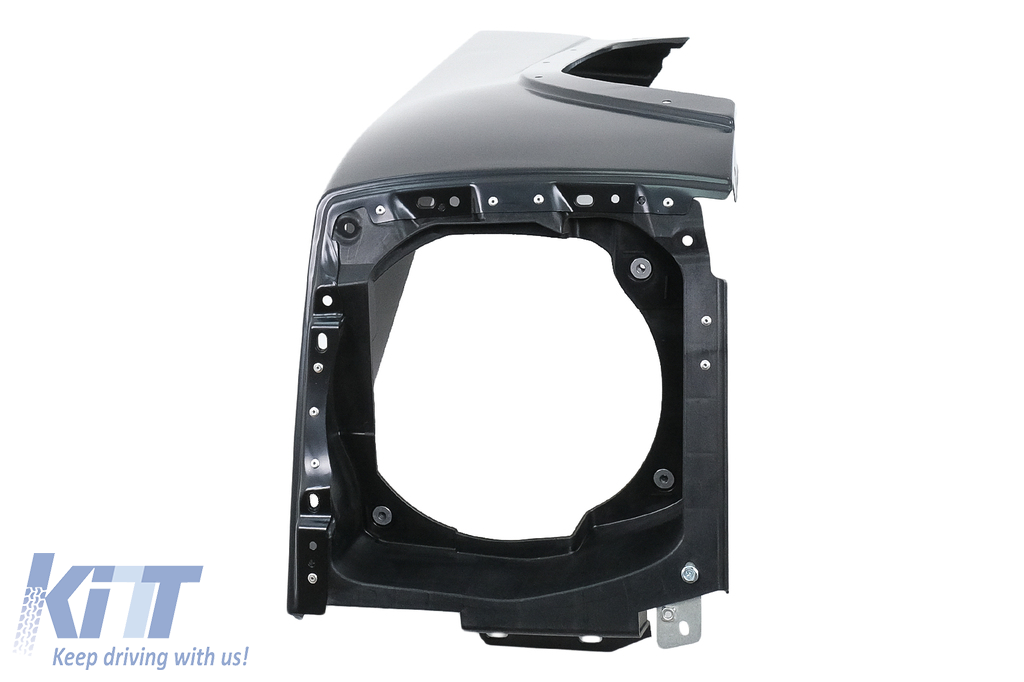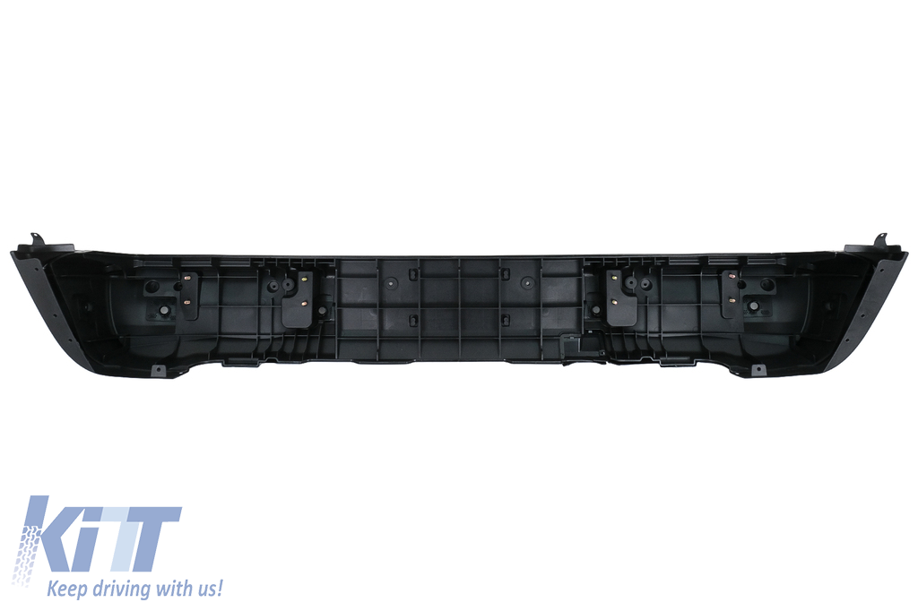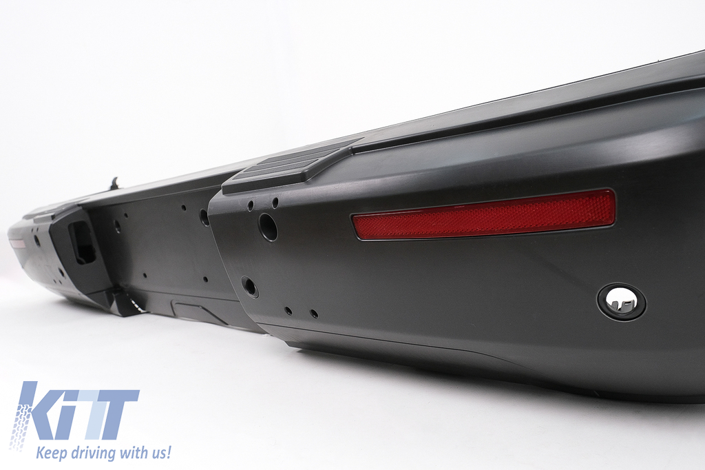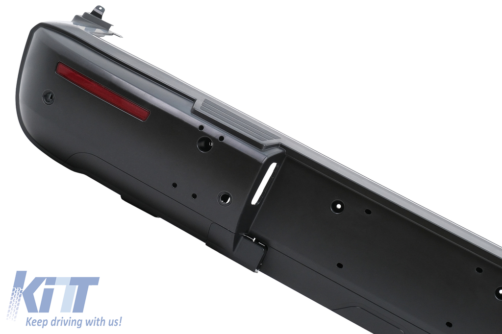 Front bumper is equipped with front bumper steel reinforcement, central grille, side grilles, ornaments, intercooler grilles, and PDC Support