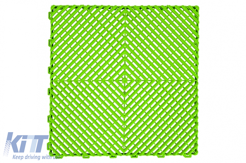 The polypropylene material provides high resistance to wear and impact, making these tiles suitable for high-traffic areas such as garages, gyms, workshops, or warehouses.