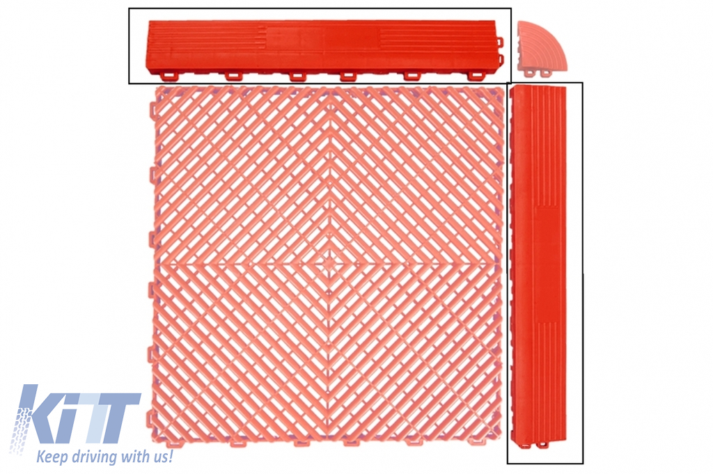 Ramp Edge for Garage Interlocking Floor Tiles Warehouse Modular Flooring Red