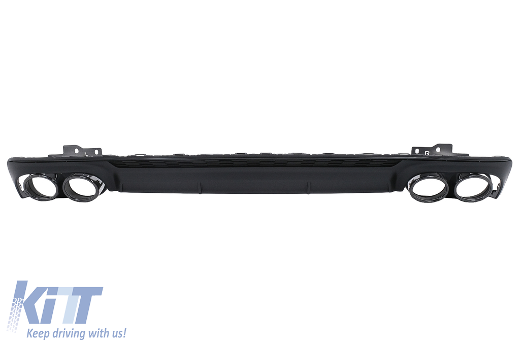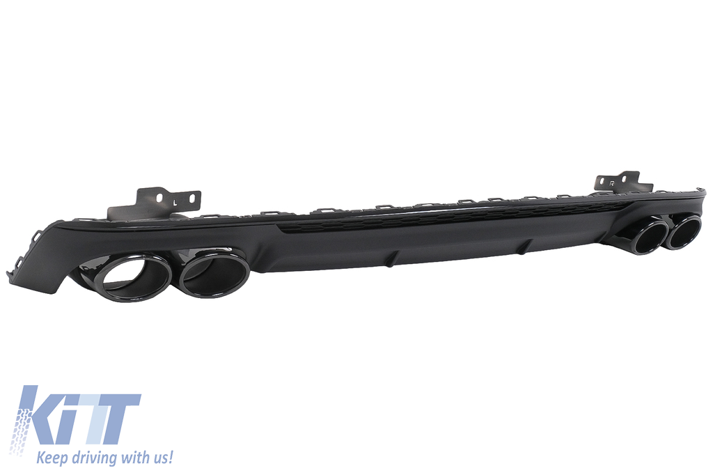 Rear Bumper Air Diffuser crafted in high-quality ABS plastic, equipped with double exhaust outlets with 304 stainless steel muffler tips.