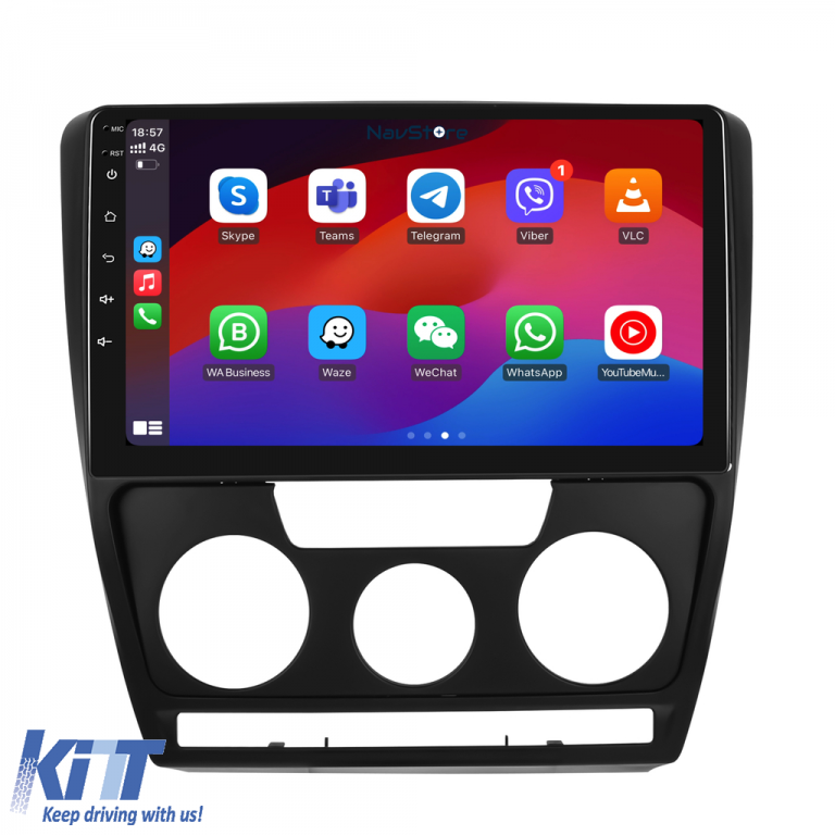 Operating System: Android 13 Processor: Octa-core 2.0GHz RAM Memory: 8GB Internal Storage (ROM): 256GB Display Size: 9 Inch Screen Resolution: 1280x720p Bluetooth: Bluetooth for calls, phonebook download and music playback WiFi: Yes (Built-in) 4G SIM Slot: Yes Network Connectivity: 4G, phone hotspot, external router, 3G or 4G dongle, CarPlay Android Auto Microphone: Built-in microphone, with the possibility of connecting an external microphone Power Supply: 12V Audio Power: 4x45W DSP Equalizer: Digital sound processor (DSP EQ) USB SD Compatibility: Suitable for USB up to 128GB, SD support via USB adapter Android Apps Compatibility: Suitable for most Android applications from Google Play CarPlay and Android Auto Compatibility: Yes, suitable for iOS (CarPlay) and Android (Android Auto) Language Support: Romanian, English, Hungarian, Spanish, Italian, German, etc. Screen Type: Capacitive TouchScreen, multi-touch, IPS Brightness Settings: Yes RDS Radio: Yes RCA Subwoofer Output: Yes RCA Video Output: Yes, with the help of a USB adapter RCA Audio Output: Yes GPS: Yes, (Google Maps, Waze, HereWeGo) Parking Sensors: Yes (Retrieve parking sensors with display where applicable) Steering Wheel Control: Yes (Retrieve steering wheel controls with canbus or analog where applicable) DVR Camera Compatibility: Yes Reversing Camera Compatibility: Yes User Manual: Yes Package Contents: Android Navigation Adapter Frame Power Wiring GPS Antenna 4G Antenna RCA Connectors Wiring for reversing camera, 2 USB cables Canbus (only if applicable) Warranty Certificate Fiscal Invoice The navigation is suitable for the following car brands: Skoda: Octavia (2004-2013)