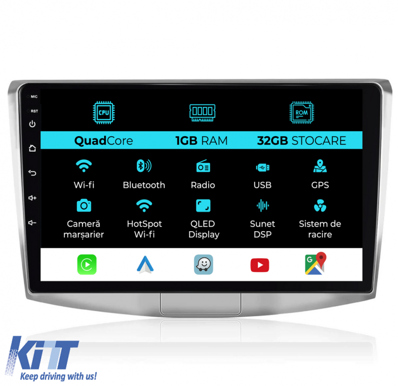 Technical Specifications: Operating System: Android 13 Screen Size: 10 inch with touchscreen RAM Memory: 1 GB Internal Memory: 32GB Processor: ARM Quad-core 1.3GHZ Chip: 8227L Connectivity: USB (audio video file playback) Wi-Fi (internet connection can be done via hotspot) Bluetooth (audio playback or calling function) Built-in microphone Wiring for connection with subwoofer and additional speakers. Resolution: 1280 720, 1080P HD video. Apple Carplay and Android Auto Wireless Fan for more efficient cooling Functions: Takes over steering wheel controls and car information. Takes over parking sensors (displays sensors only if they are OEM front-rear). Mirror link compatible with Android and IOS. USB output (audio and video playback) Audio output 4x50W RCA cables for subwoofer. Phone connection via bluetooth (audio playback from phone, phone calls, phonebook). Supports rearview camera or DVR camera. Package Contents: 1 x Car Navigation 1 x GPS Antenna 1 x RCA Cables 1 x RCA Camera Cable 2 x USB Cables 2 x Power Connectors 1 x CANBUS The navigation is suitable for the following car brands: VOLKSWAGEN: Passat B6 (2005 - 2011) Passat B7 (2011 - 2015) Passat CC (2008 - 2015)