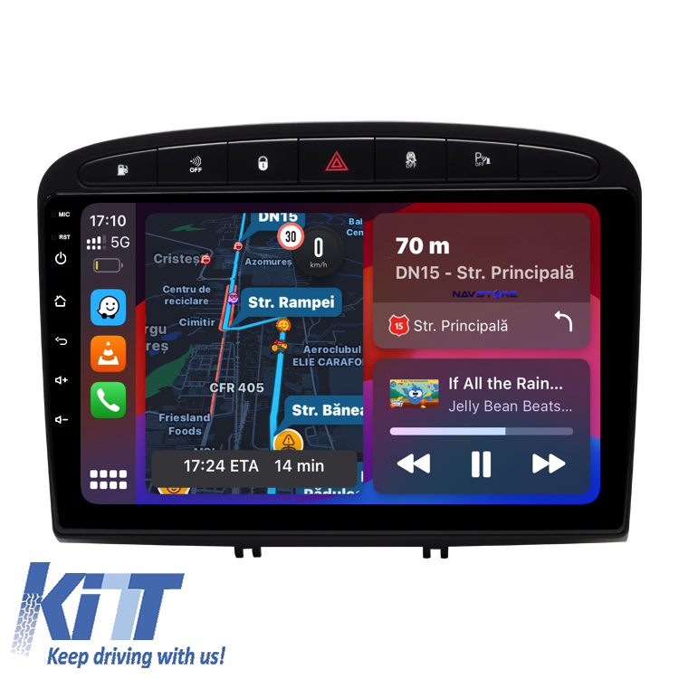Operating System: Android 13 Processor: Quadcore RAM Memory: 1GB Internal Storage (ROM): 32GB Display Size: 9 Inch Screen Resolution: 1280x720p Bluetooth: Bluetooth for calls, phonebook download and music playback WiFi: Yes (Integrated) 4G SIM Slot: No Network Connectivity: Phone hotspot, external router, 3G or 4G dongle, CarPlay Android Auto Microphone: Built-in microphone, with the possibility of connecting an external microphone Power Supply: 12V Audio Power: 4x45W DSP Equalizer: Digital sound processor (DSP EQ) USB SD Compatibility: Suitable for USB up to 128GB, SD support via USB adapter Android App Compatibility: Suitable for most Android apps from Google Play CarPlay and Android Auto Compatibility: Yes, suitable for iOS (CarPlay) and Android (Android Auto) Language Support: Romanian, English, Hungarian, Spanish, Italian, German, etc. Screen Type: Capacitive TouchScreen, multi-touch, IPS Brightness Settings: Yes RDS Radio: Yes RCA Subwoofer Output: Yes RCA Video Output: Yes, using a USB adapter RCA Audio Output: Yes GPS: Yes (Google Maps, Waze, HereWeGo) Parking Sensors: Yes (Parking sensor retrieval with display where applicable) Steering Wheel Control: Yes (Steering wheel commands retrieval with canbus or analog where applicable) DVR Camera Compatibility: Yes Rearview Camera Compatibility: Yes User Manual: Yes Package Contents: Android Navigation Adapter Frame Power Wiring GPS Antenna RCA Connectors Wiring for rearview camera, 2 USB cables Canbus (only if applicable) Warranty Certificate Invoice The navigation is suitable for the following car brands: Peugeot: 308 (2008-2013), 408(2008-2013)