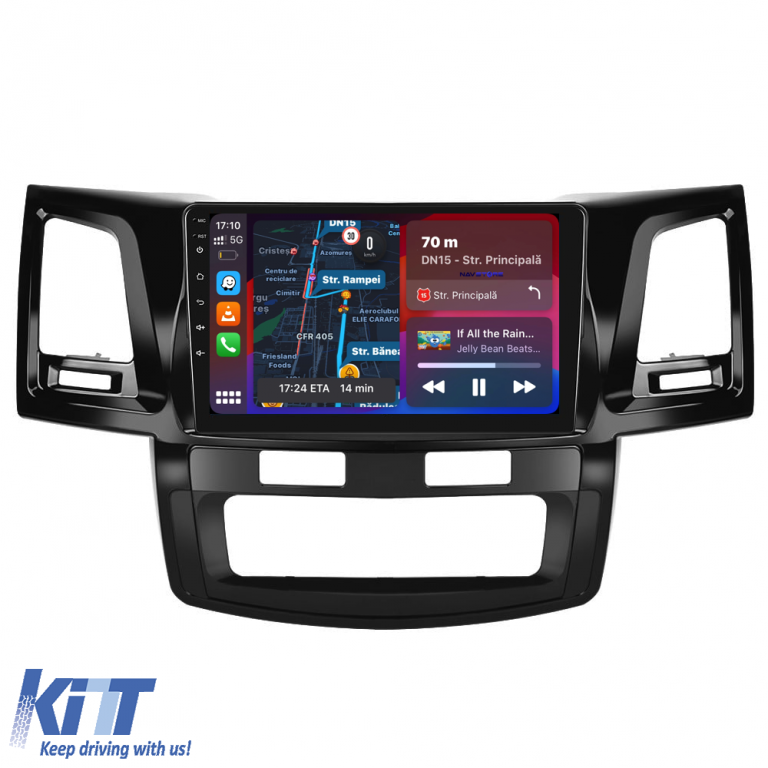 Operating system: Android 13 Processor: Octa-core 2.0Ghz RAM: 8GB Internal storage (ROM): 256GB Display size: 9 Inch Screen resolution: 1280x720p Bluetooth: Bluetooth for calls, phonebook download and music playback WiFi: Yes (Built-in) 4G Sim slot: Yes Network connectivity: 4G, phone hotspot, external router, 3G or 4G dongle, CarPlay Android Auto Microphone: Built-in microphone, with the ability to connect an external microphone Power supply: 12V Audio power: 4x45W DSP equalizer: Digital sound processor (DSP EQ) USB SD compatibility: Suitable for USB up to 128GB, SD support via USB adapter Android app compatibility: Suitable for most Android applications from Google Play CarPlay and Android Auto compatibility: Yes, suitable for iOS (CarPlay) and Android (Android Auto) Language support: Romanian, English, Hungarian, Spanish, Italian, German, etc. Screen type: Capacitive touchscreen, multi-touch, IPS Brightness settings: Yes RDS radio: Yes RCA subwoofer output: Yes RCA video output: Yes, with the help of a USB adapter RCA audio output: Yes GPS: Yes, (Google Maps, Waze, HereWeGo) Parking sensors: Yes (Park sensor acquisition with display where applicable) Steering wheel control: Yes (Steering wheel controls acquisition with canbus or analog where applicable) DVR camera compatibility: Yes Reverse camera compatibility: Yes User manual: Yes Package contents: Android navigation Adapter frame Power cable GPS antenna 4G antenna RCA connectors Wiring for reverse camera, 2 USB cables Canbus (only if applicable) Warranty certificate Invoice The navigation is suitable for the following car brands: Toyota: Hilux VII (2004 - 2015)