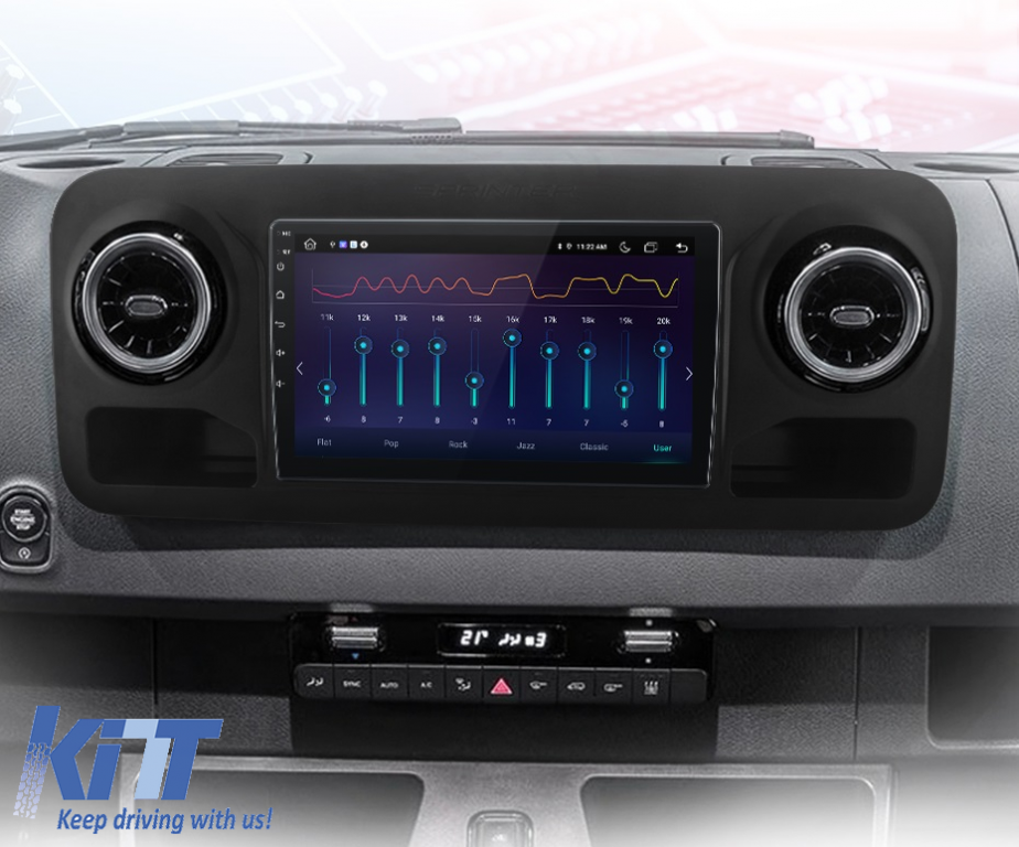 Operating System: Android 13 Processor: Octa-core 1.8Ghz RAM Memory: 6GB Internal Storage (ROM): 128GB Display Size: 10 Inch Screen Resolution: 1280x720p Bluetooth: Bluetooth for calls, phonebook download and music playback WiFi: Yes (Integrated) 4G SIM Slot: Yes Network Connectivity: 4G, phone hotspot, external router, 3G or 4G dongle, CarPlay Android Auto Microphone: Integrated microphone, with the possibility of connecting an external microphone Power Supply: 12V Audio Power: 4x45W DSP Equalizer: Digital Sound Processor (DSP EQ) USB SD Compatibility: Suitable for USB up to 128GB, SD support via USB adapter Android App Compatibility: Suitable for most Android applications from Google Play CarPlay and Android Auto Compatibility: Yes, suitable for iOS (CarPlay) and Android (Android Auto) Language Support: Romanian, English, Hungarian, Spanish, Italian, German, etc. Screen Type: Capacitive TouchScreen, multi-touch, IPS Brightness Settings: Yes RDS Radio: Yes RCA Subwoofer Output: Yes RCA Video Output: Yes, with the help of a USB adapter RCA Audio Output: Yes GPS: Yes, (Google Maps, Waze, HereWeGo) Parking Sensors: Yes (Parking sensor takeover with display where applicable) Steering Wheel Control: Yes (Steering wheel command takeover with canbus or analog where applicable) DVR Camera Compatibility: Yes Reverse Camera Compatibility: Yes User Manual: Yes Package Contents: Android Navigation Adaptor frame Power cabling GPS antenna 4G antenna RCA connectors Cabling for reverse camera, 2 USB cables Canbus (only where applicable) Warranty certificate Fiscal invoice The navigation is suitable for the following car brands: Mercedes Benz: Sprinter (2018 - 2023)