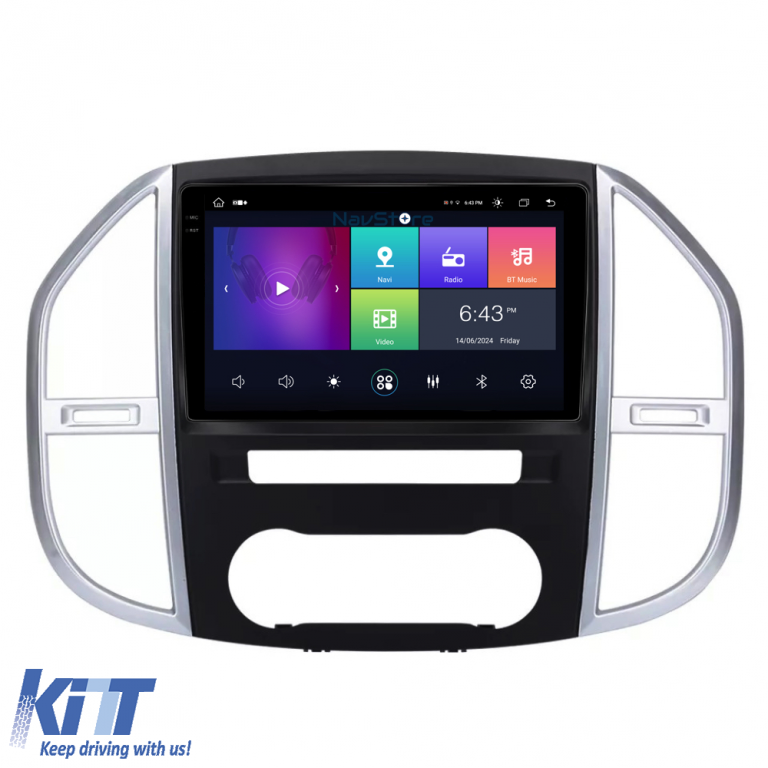 Technical Specifications: Operating System: Android 13 Screen Size: 9 inch with touchscreen RAM Memory: 4 GB Internal Memory: 64 GB Processor: Octa-Core 2.0 GHz Chip: 8867 Connectivity: USB (play audio video files) Wi-Fi (internet connection can be made via hotspot) Bluetooth (audio playback or calling function) Built-in Microphone Wiring for connection with subwoofer and additional speakers. Resolution: 2000P 1200P, 2K Display: QLED RDS Radio External Microphone 4G (SIM card slot) Integrated DSP (DTS Sound) Apple Carplay and Android Auto Wireless Functions: Takes steering wheel controls and car information. Takes parking sensors (displays sensors only if they are OEM front-back). USB output (audio and video playback) Audio output 4x50W RCA cables for subwoofer. Phone connection via bluetooth (audio playback from phone, phone calls, phonebook). Supports reversing camera or DVR camera. Package Contents: 1 x Car Navigation 1 x GPS Antenna 1 x RCA Cables 1 x Camera RCA Cable 1 x USB Cable 1 x 4G Antenna 1 x SIM card holder 1 x Power Connectors. Navigation suitable for the following car brands: Mercedes Benz: Vito W447 (2014 - 2021)
